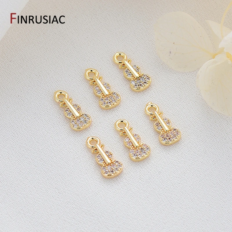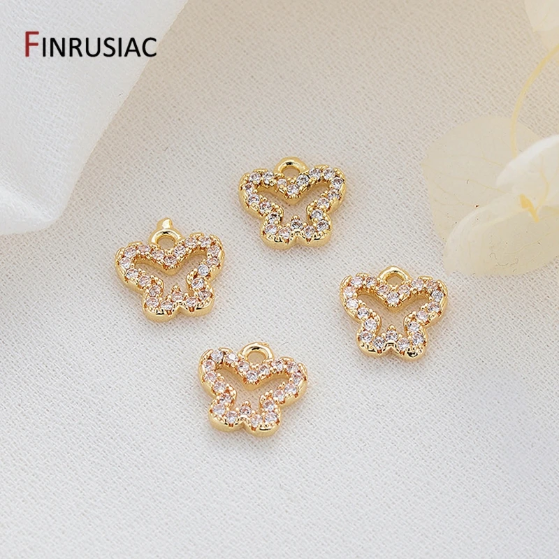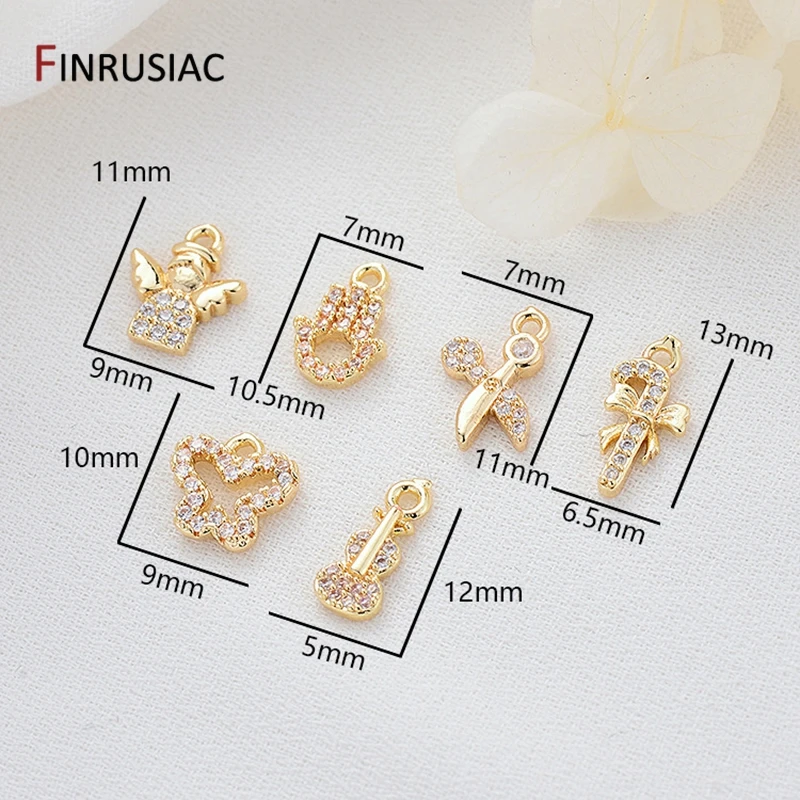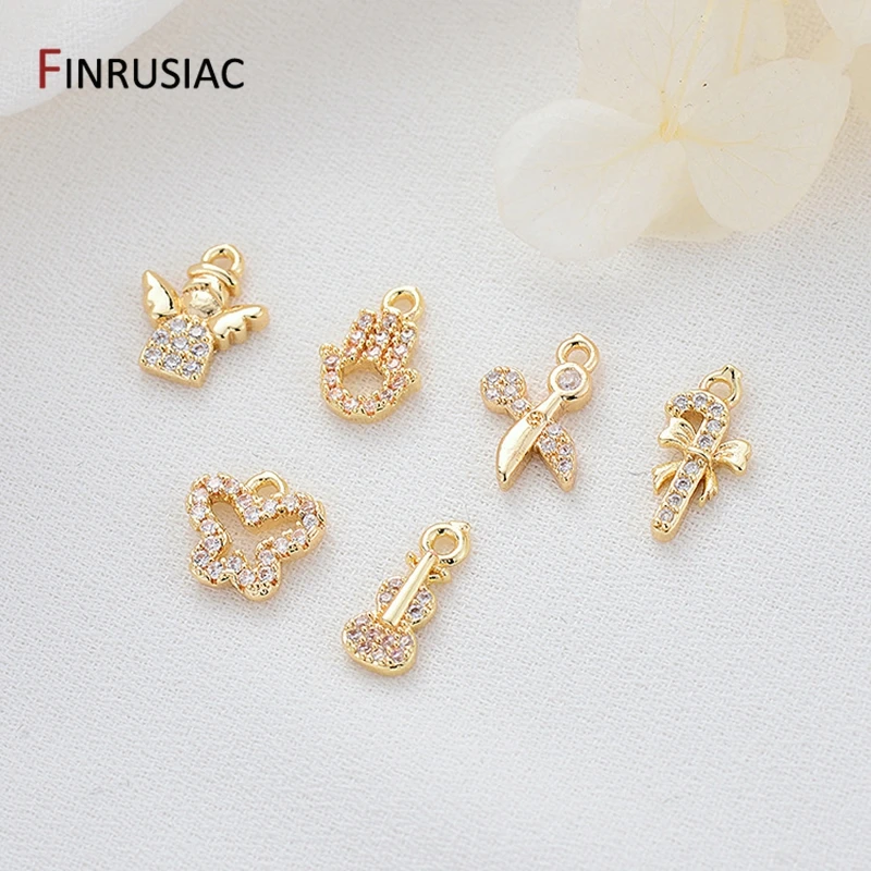 Bijoux à bricoler soi-même faisant 6 Types 14K véritable plaqué or pavé réglage Zircon petite Mini fée/papillon/violon/Hamsa pendentifs breloques |