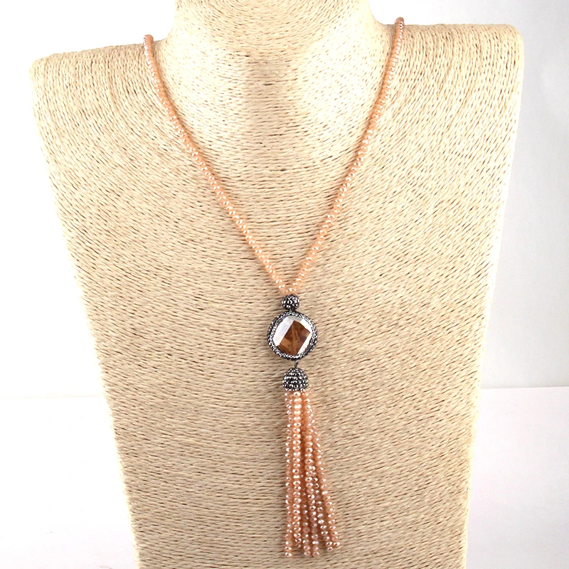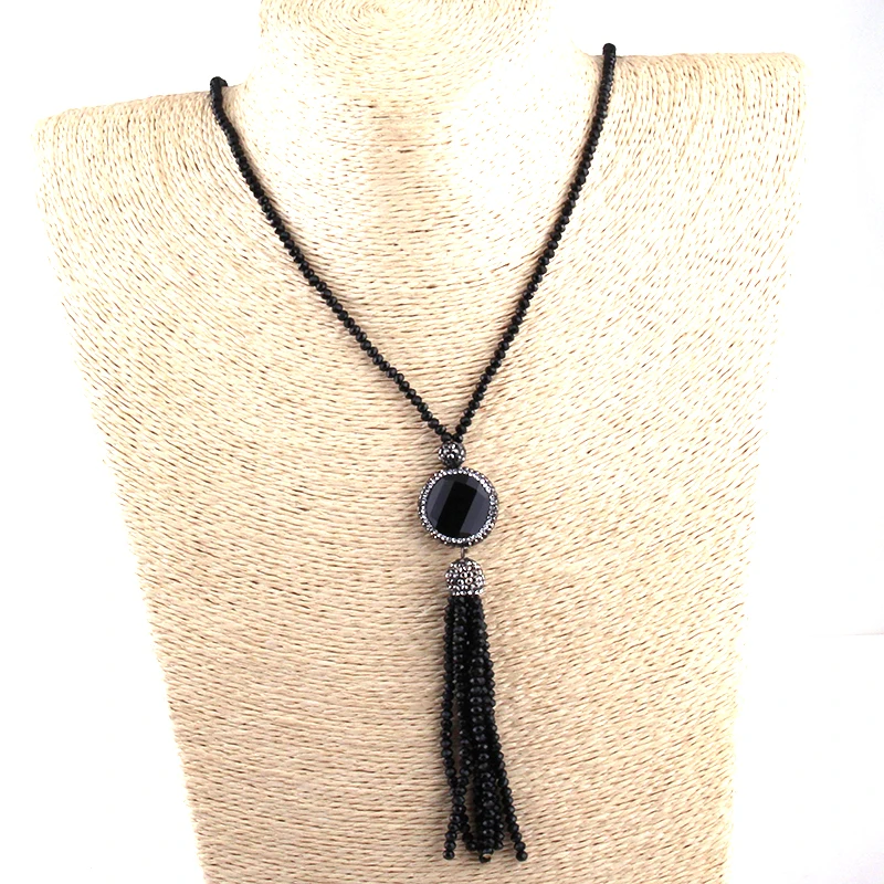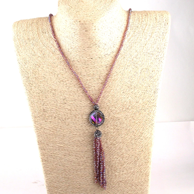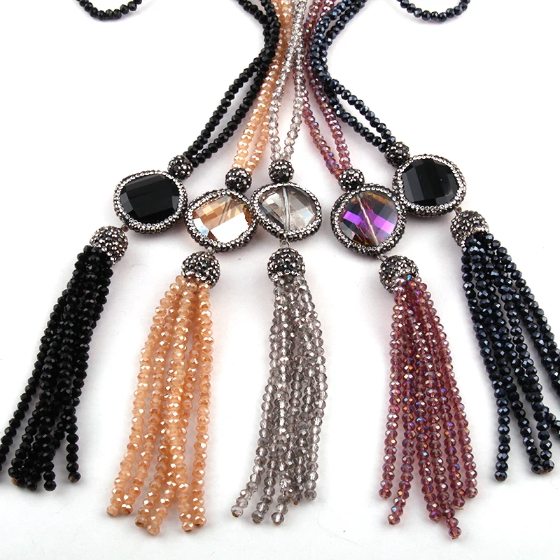 Bijoux bohème à la mode, Mini cristal de verre et pavé fait à la main, collier Tas en cristal déformé pour femmes, collier ethnique |