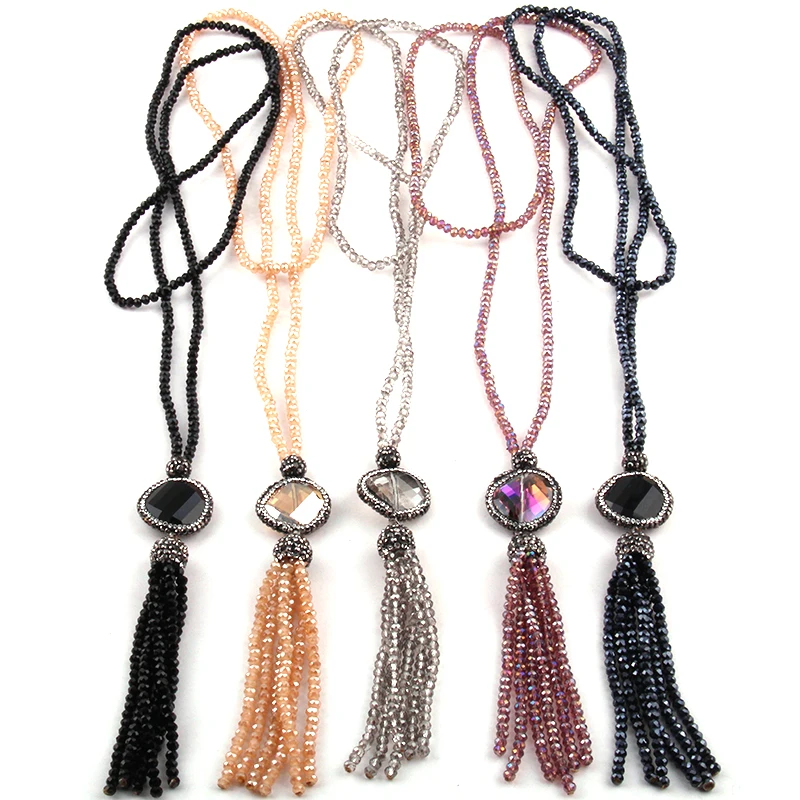 Bijoux bohème à la mode, Mini cristal de verre et pavé fait à la main, collier Tas en cristal déformé pour femmes, collier ethnique