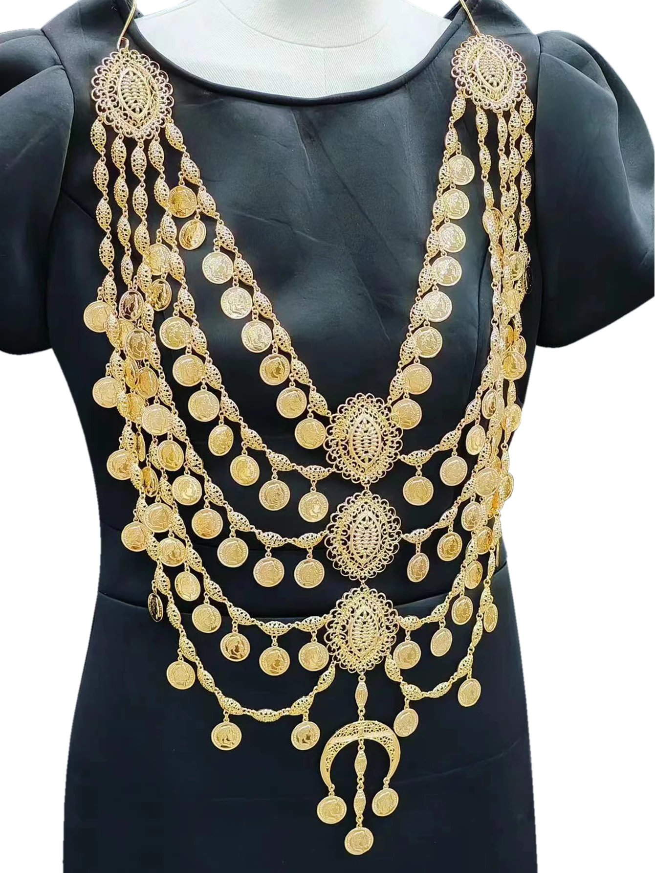 Bijoux de mariée algériens, multi-chaînes, pièce de monnaie entièrement faite à la main, grand collier, tête de poitrine, robe de mariée arabe, bijoux de corps, nouvelle collection