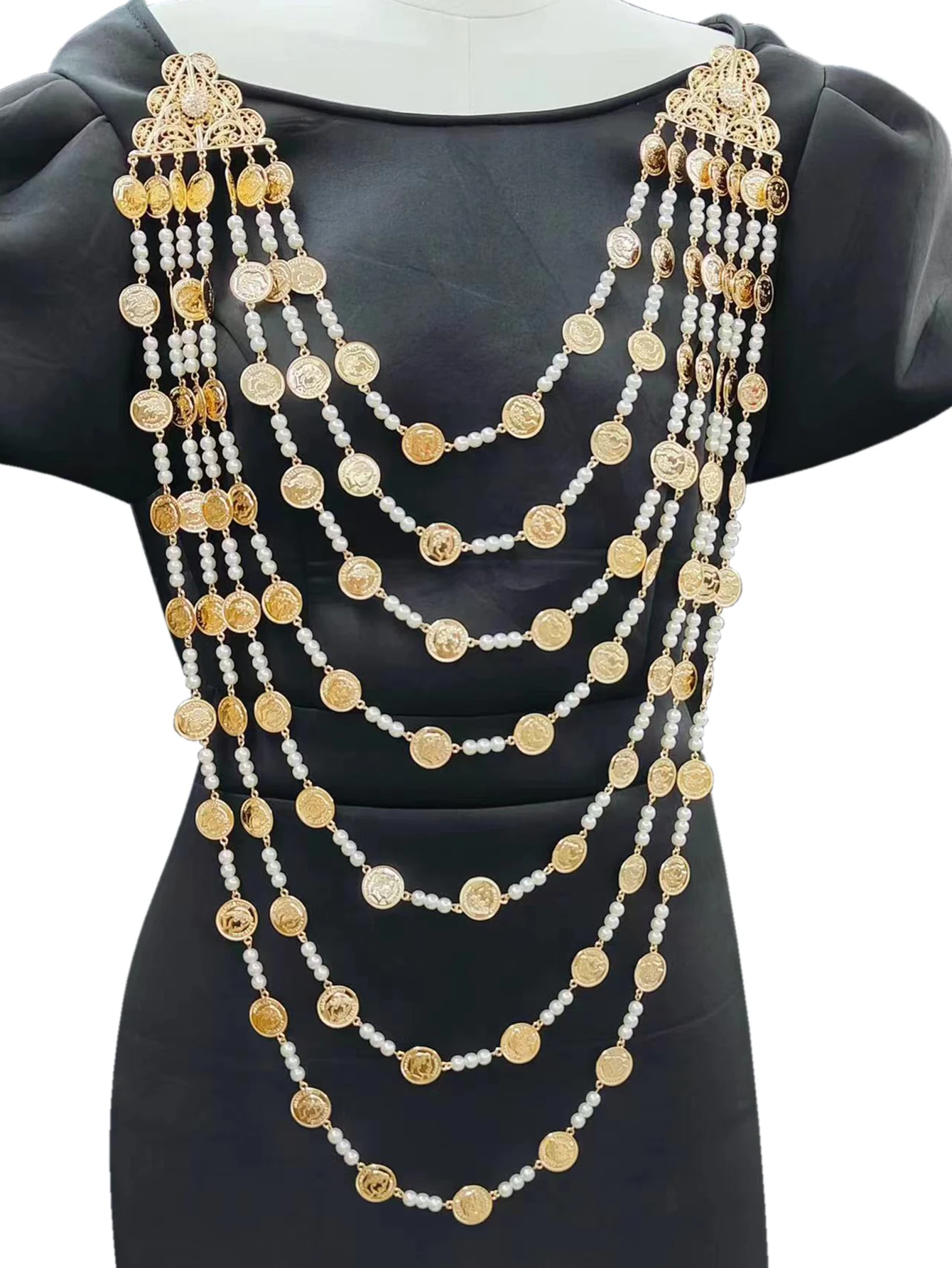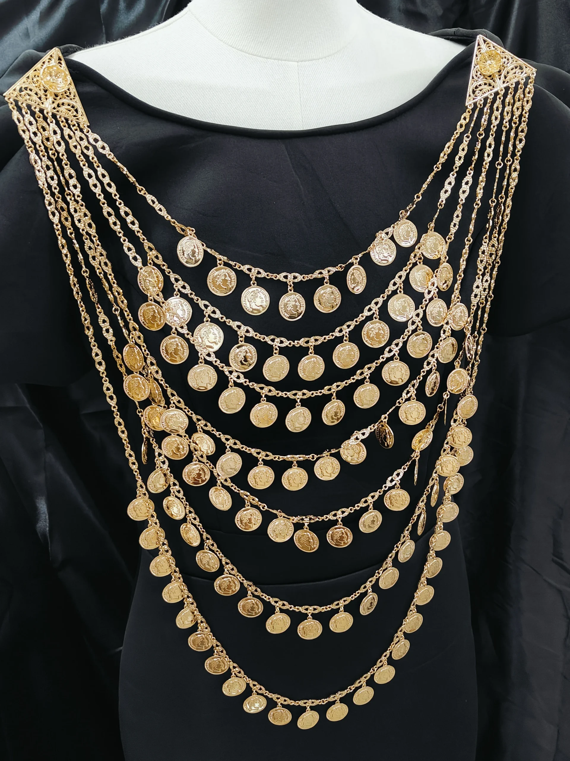 Bijoux de mariée algériens, multi-chaînes, pièce de monnaie entièrement faite à la main, grand collier, tête de poitrine, robe de mariée arabe, bijoux de corps, nouvelle collection |
