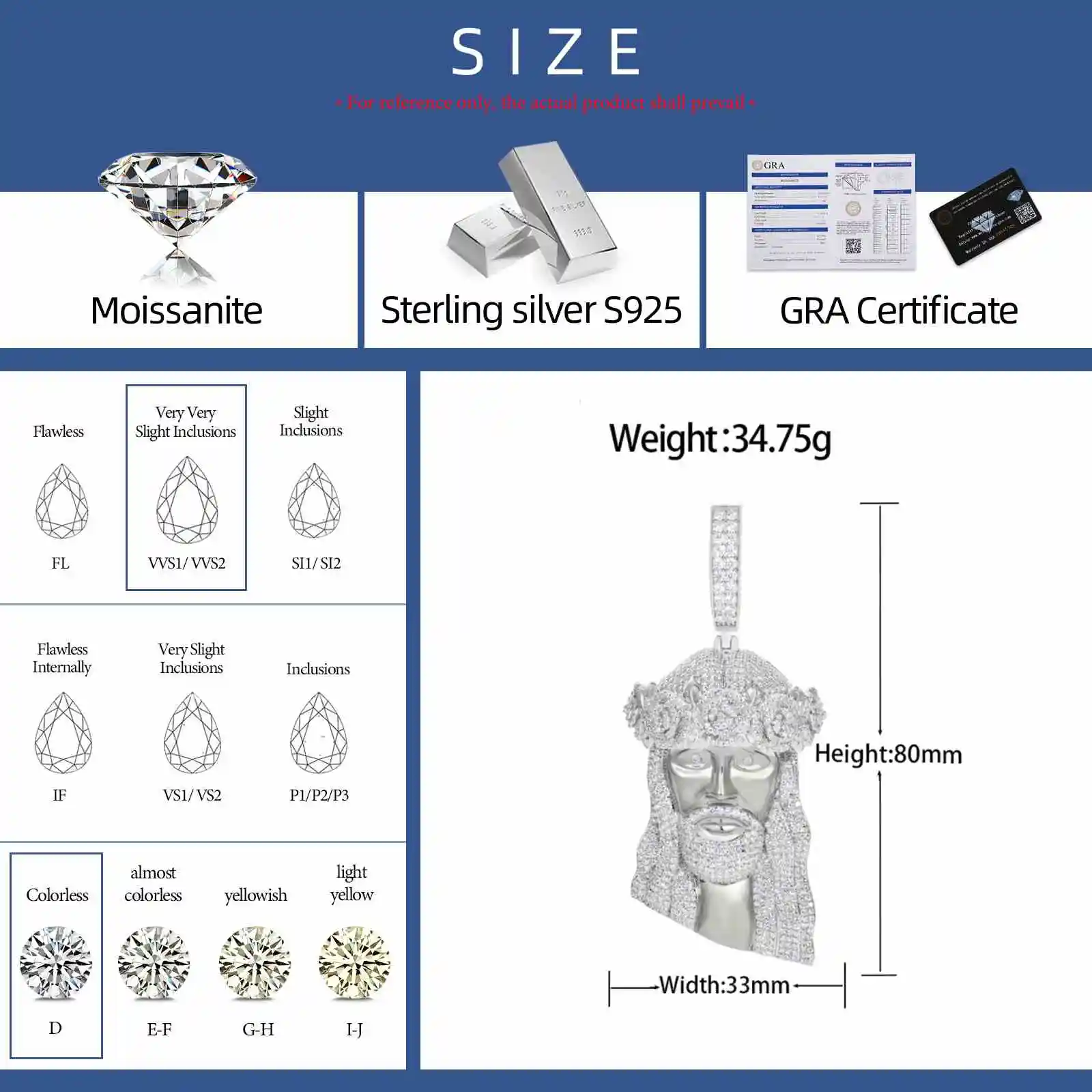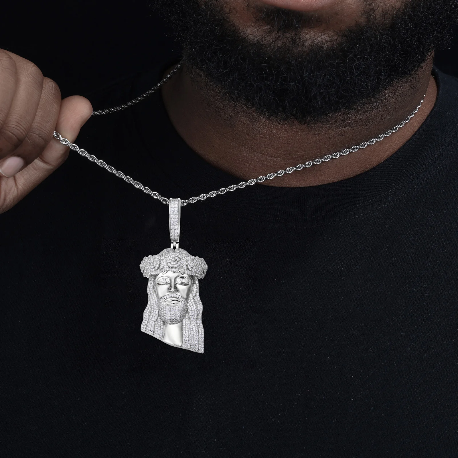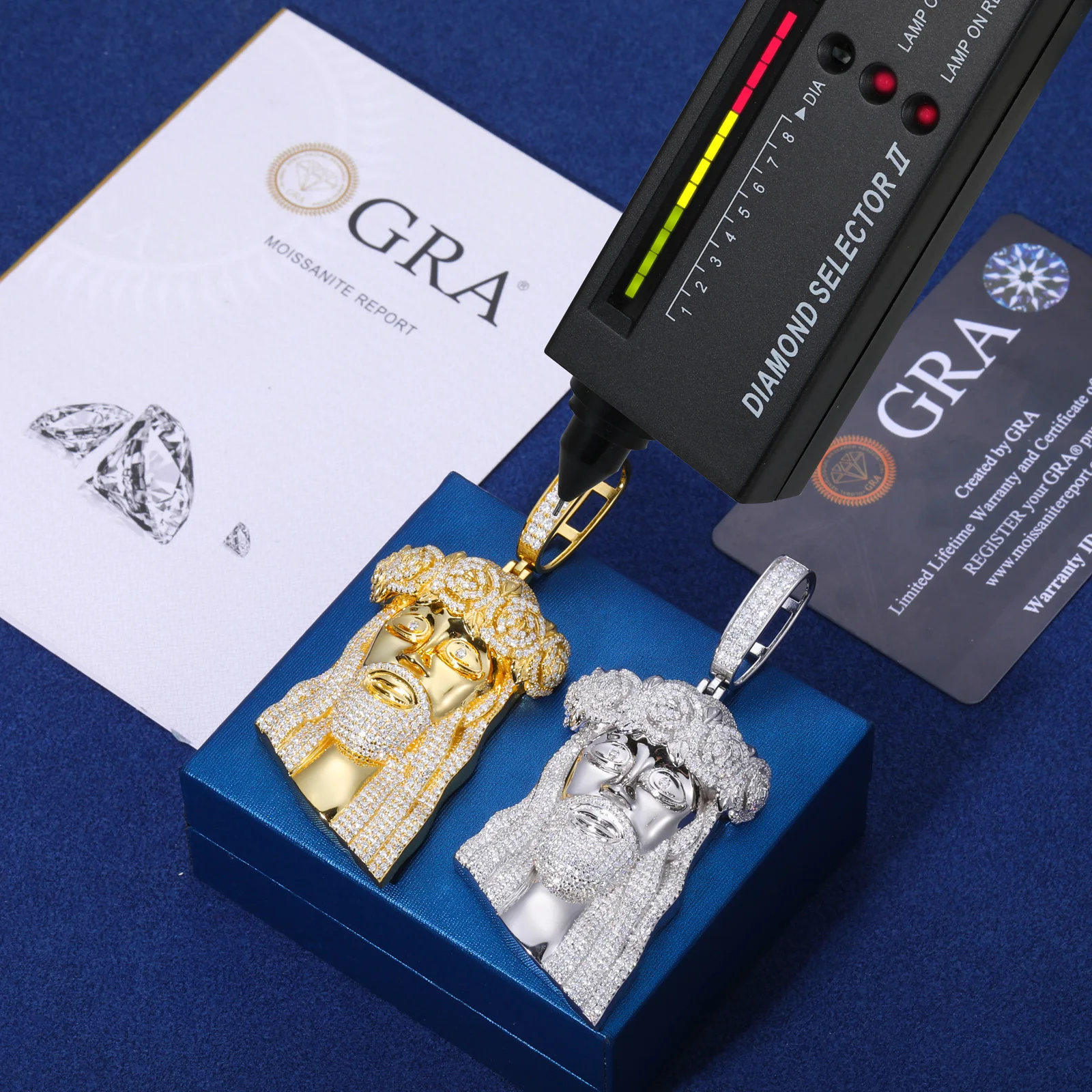 Bijoux Hip Hop fins pour hommes, plaqué or 18 carats, argent Sterling 925, diamant VVS Moissanite glacé, pendentif tête de jésus |