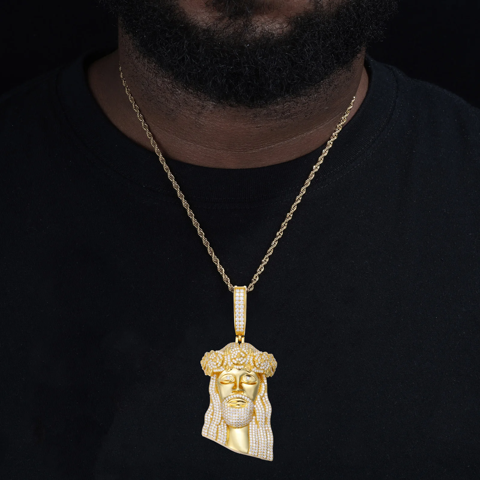 Bijoux Hip Hop fins pour hommes, plaqué or 18 carats, argent Sterling 925, diamant VVS Moissanite glacé, pendentif tête de jésus