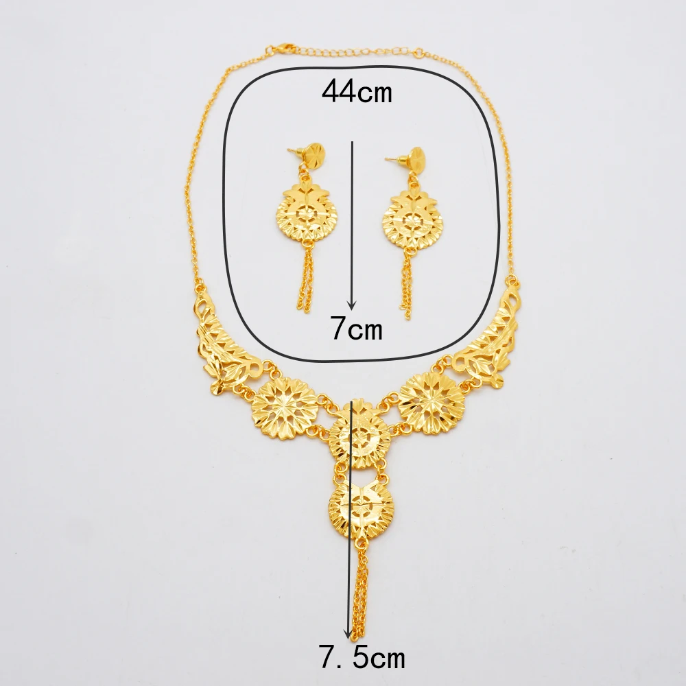Bijoux indiens de luxe, boucles d'oreilles, collier, ensembles de bijoux pour femmes, couleur or dubaï, cadeaux de fête de mariage africain et arabe |