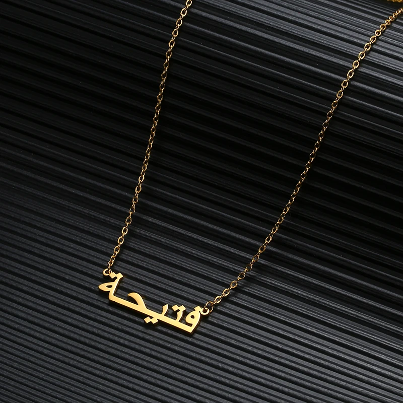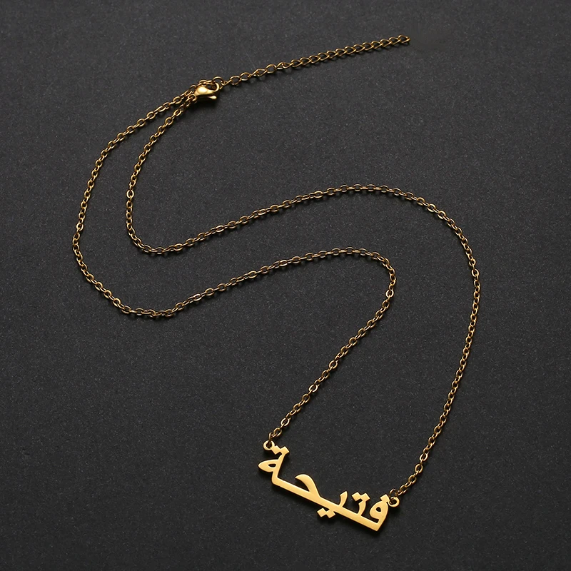 Bijoux islamiques, colliers à pendentif personnalisés, chaîne de couleur or en acier inoxydable, collier avec nom arabe personnalisé, cadeau de demoiselle d'honneur pour femmes |