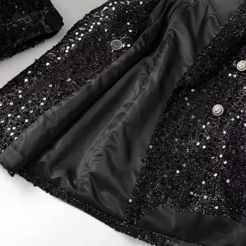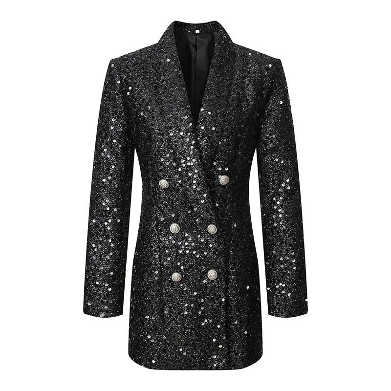 Blazer à Paillettes Brillantes pour Femme, Vêtement de Travail à la Mode et Décontracté, Double Boutonnage, Devant Ouvert, Col en V, Automne |