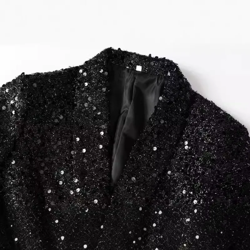 - Blazer tendance avec design pailleté et brillant pour une apparence élégante et festive