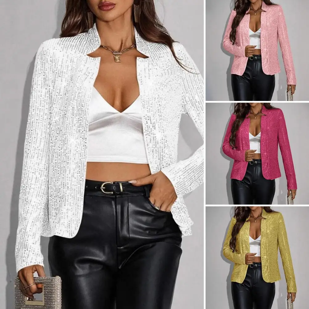 Blazer court à paillettes brillantes pour femmes, manteau à col montant, blazer à paillettes pour dames, document doré, mode automne