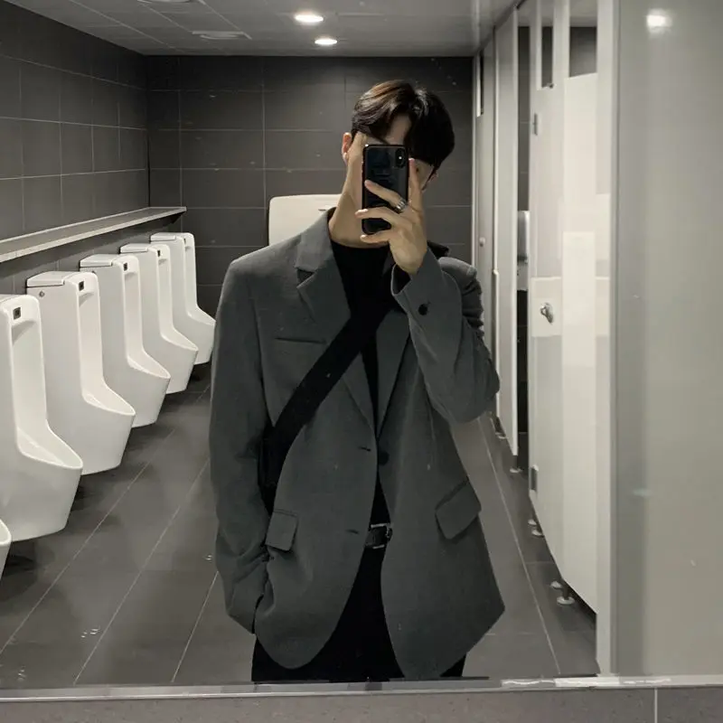 Blazer gris à simple boutonnage pour hommes, vestes décontractées pour hommes, vêtements de printemps, manteau à la mode, original, élégant, classique |