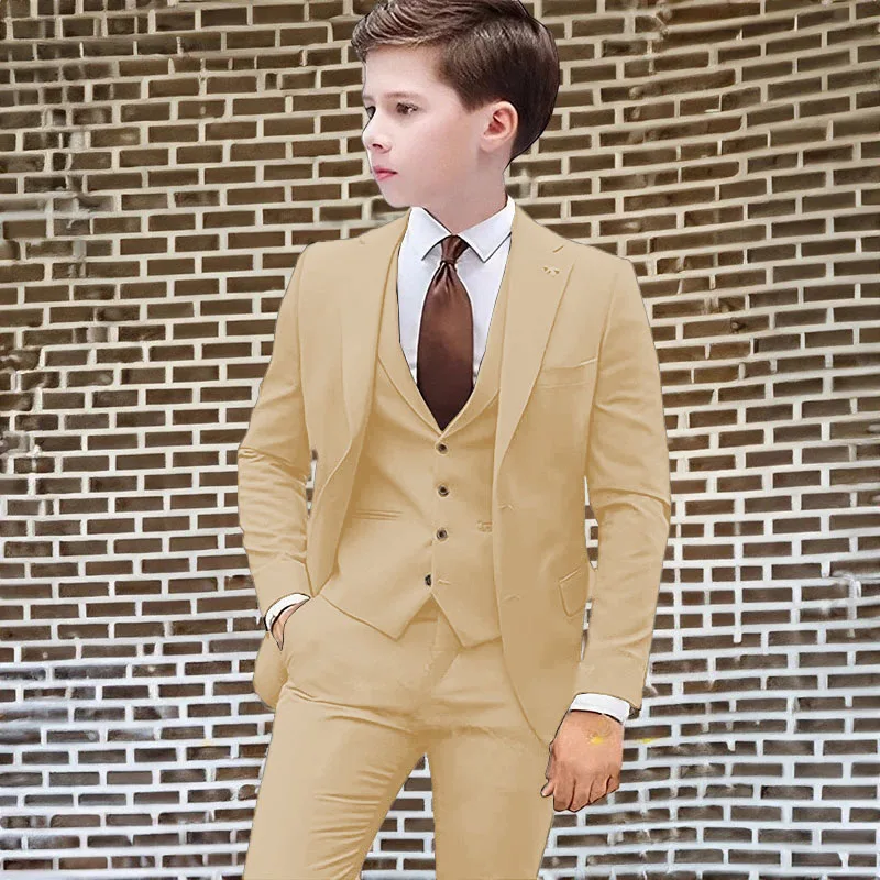 Blazer Slim Fit Beige Trempé pour Garçons, Smoking de Mariage, Veste d'Affaires Formelle, GlaPants pour Enfants, Festival sur Mesure, 3 Pièces |