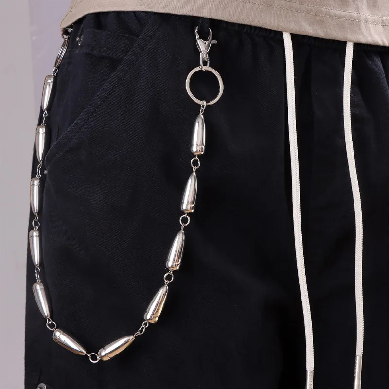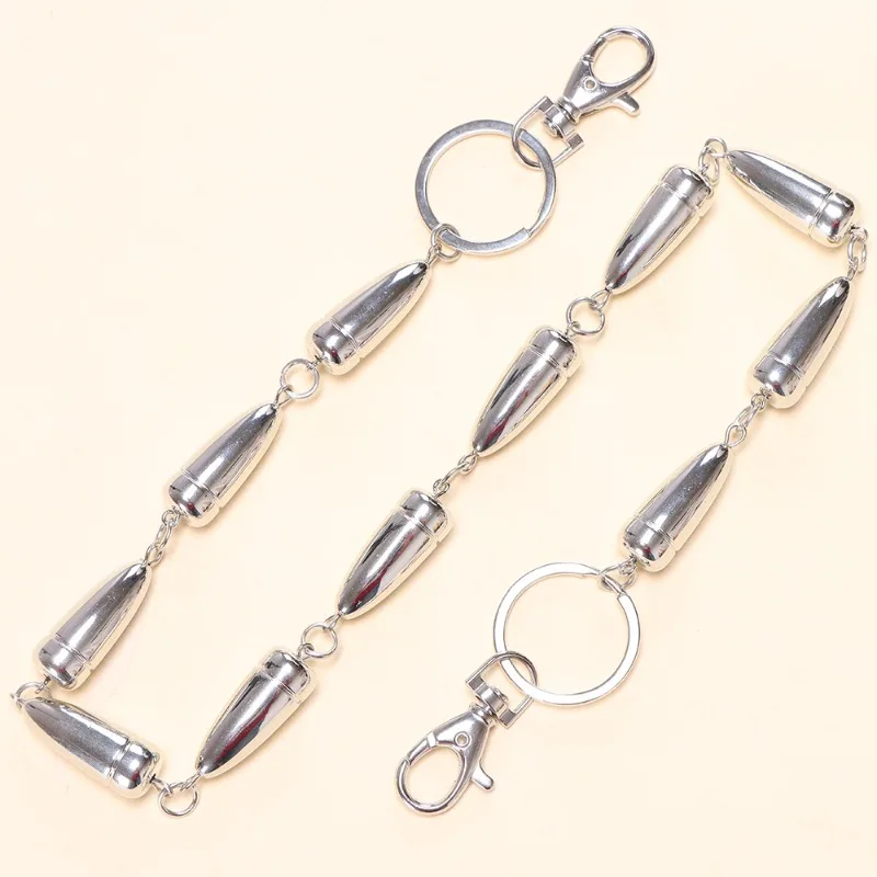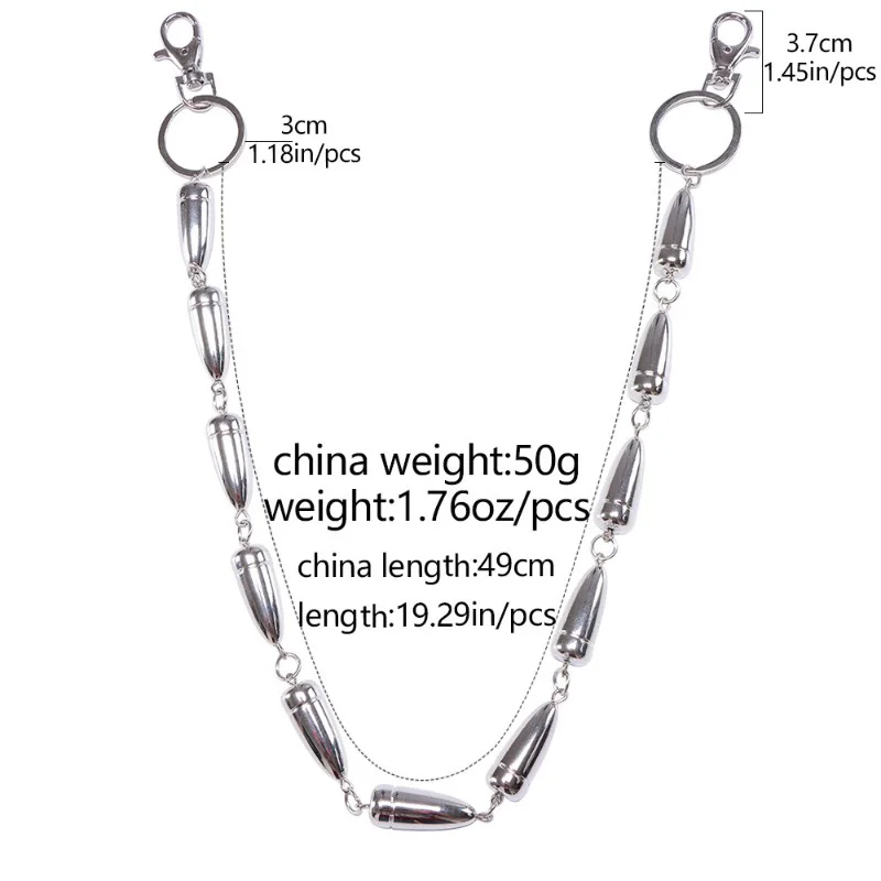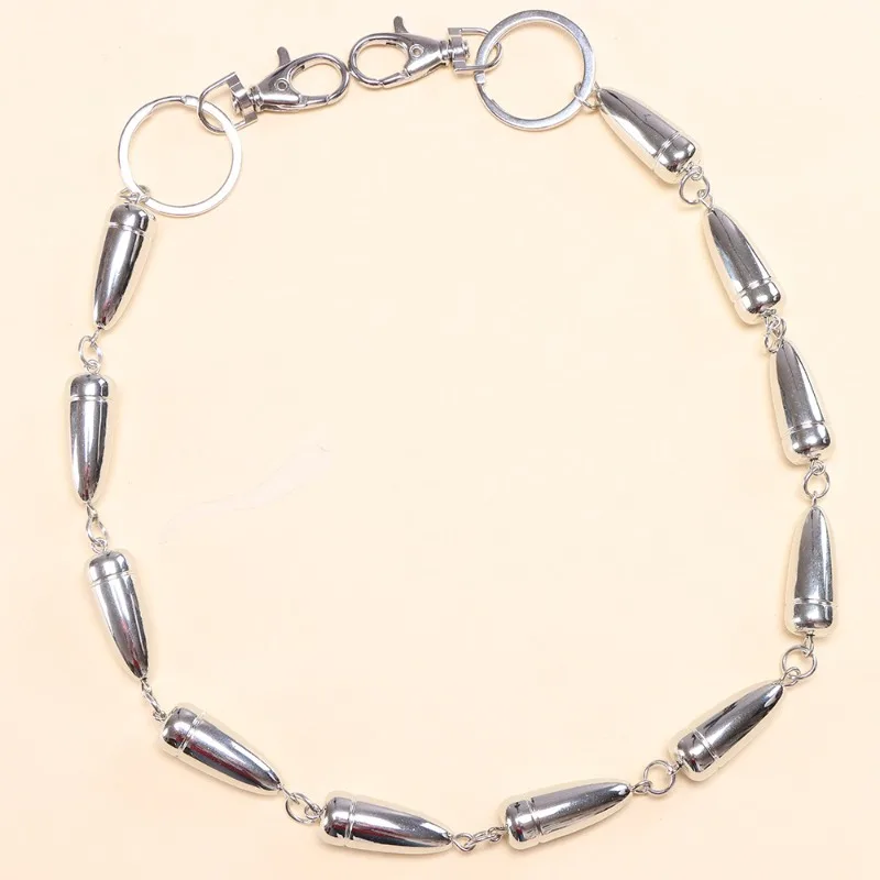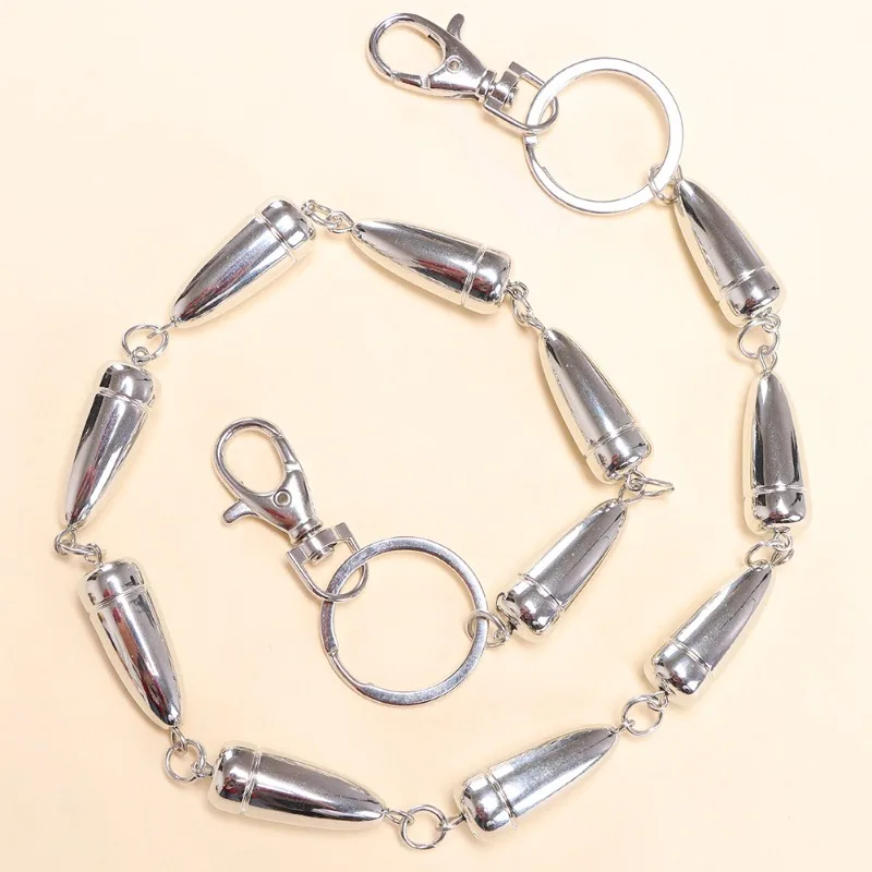 Bobine argentée monocouche ceinture chaîne cartouche Style Punk Rock pantalon accessoire Cool Hip Hop gothique danseur rappeur accessoire |