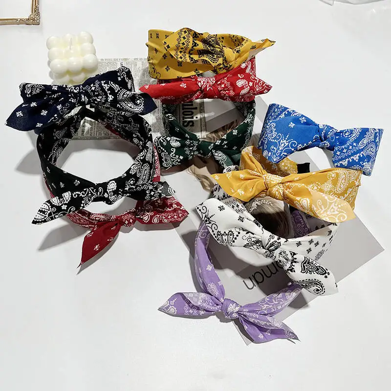 Boho Bow imprimé bandeaux pour femmes à large bord bandeaux Vintage élégant cerceau de cheveux noeud croisé chapeaux filles cheveux accessoires |