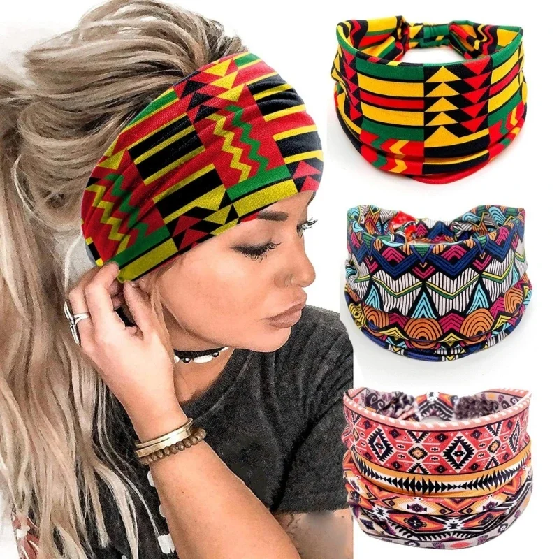Boho Print HairBands for Women Yoga Workout Sports Head Band Fashion Band Band Band African Band Bands Stretchy Headwrap |