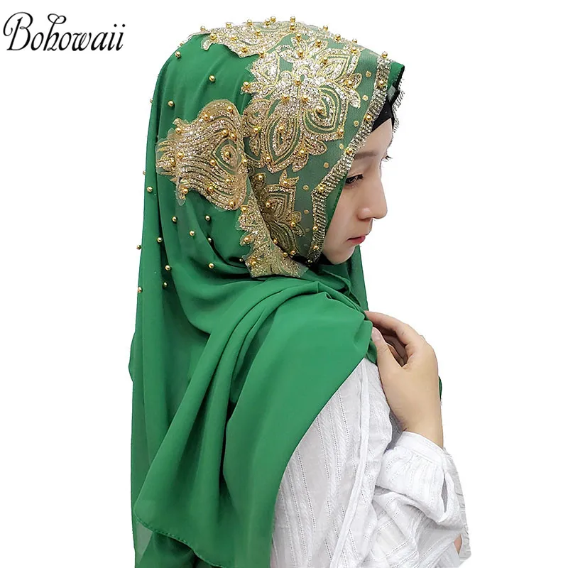 BOHOWAII paillettes diamants Panuelos Hijab écharpe châle Abaya foulard Turbantes mouchoir Long en mousseline de soie Kopftuch Femme Musulman |