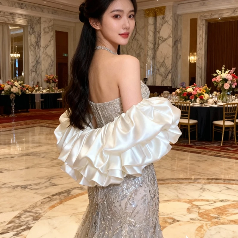 Boléro de mariage en satin pour femmes, enveloppe de mariée élégante, boléro à volants pour fête formelle, demoiselle d'honneur, robe de soirée |