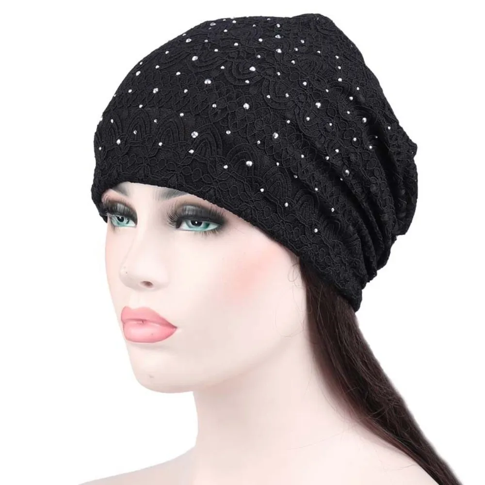 Bonnet en dentelle douce et décontractée avec strass, Style ethnique, chaud, coupe-vent, confortable, Turban Hijab, pour l'extérieur |
