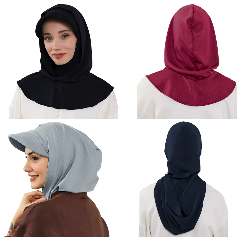 Bonnet Hijab à couverture complète avec visière, prêt à porter, visière modeste, sous-écharpe, Bonnet avec couvre-cou, Turban musulman |