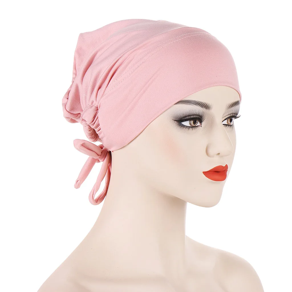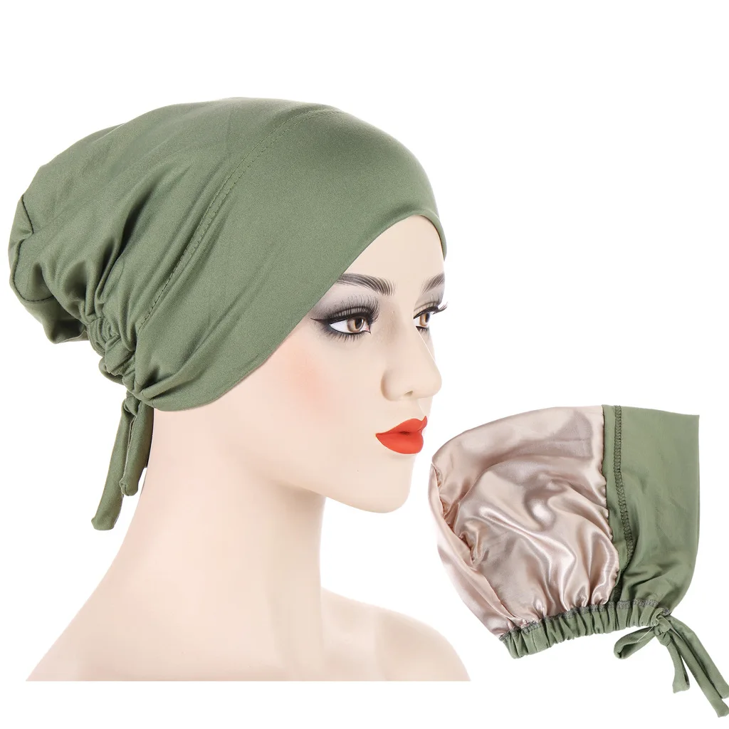Bonnet Hijab en Satin Double couche pour femmes, sous-capuchon islamique avec Bonnet à cravate, hiyabs instantanés, foulards turcs, Turban musulman, Bandana