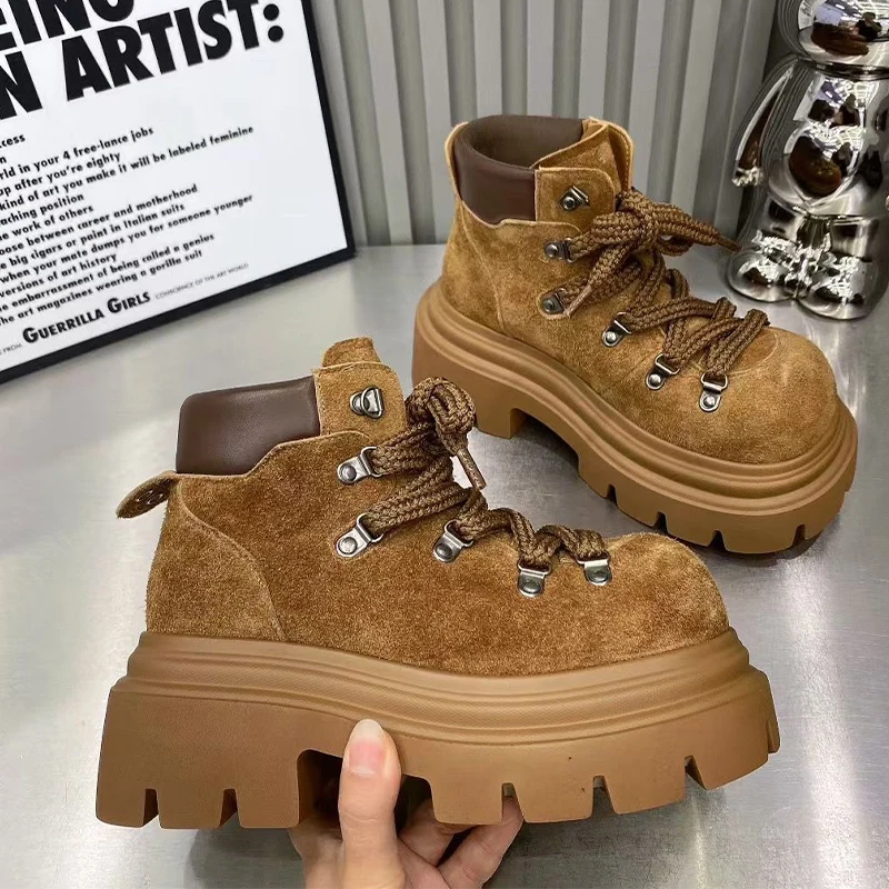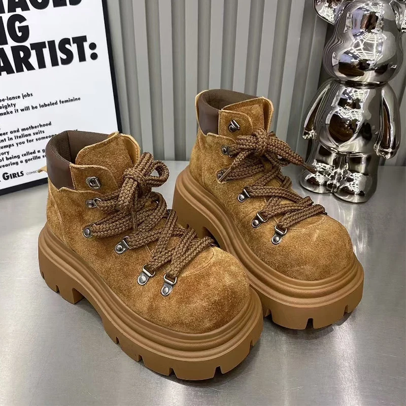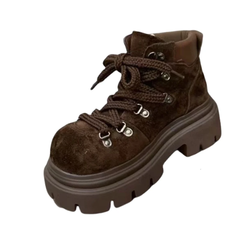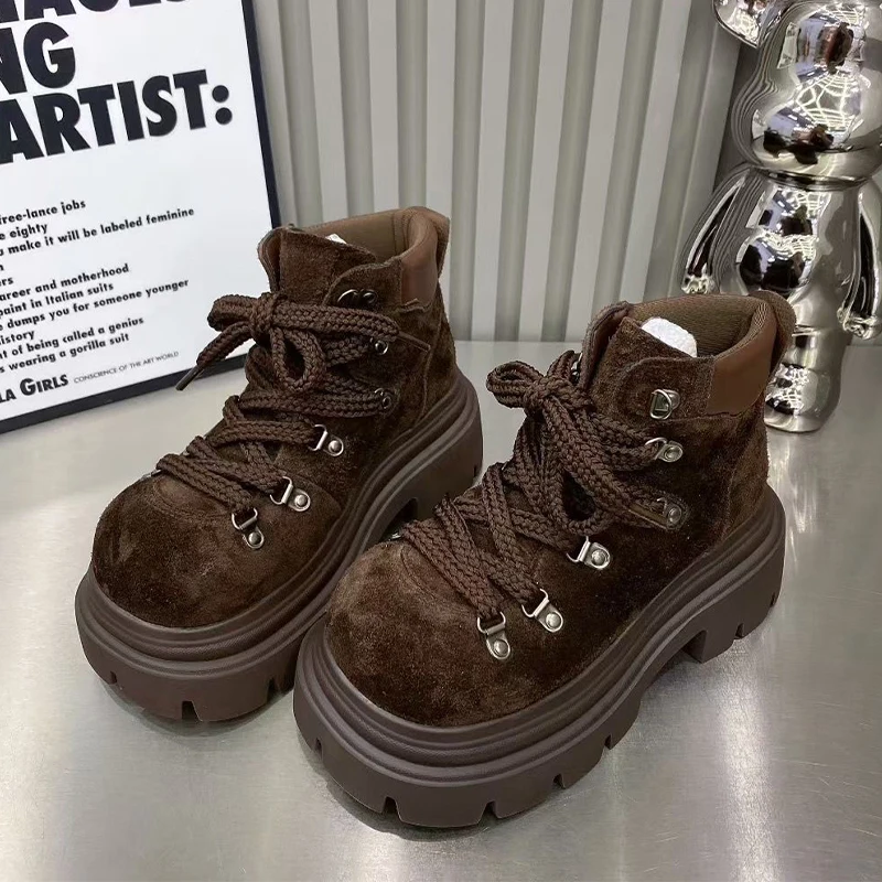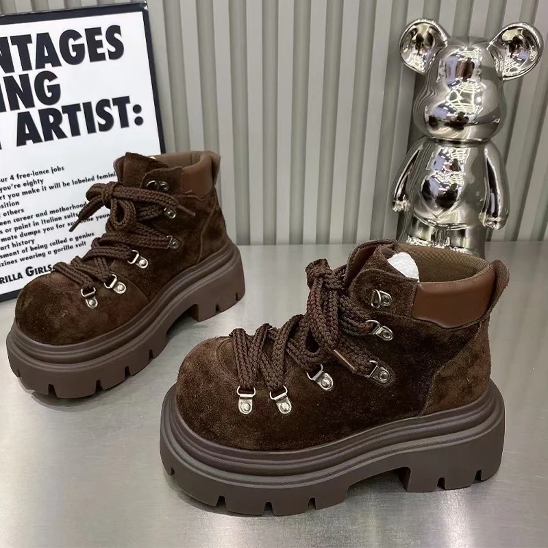 Bottines plates pour femmes plate-forme chaussures De créateur à lacets mode hiver bottes De neige 2025 nouveau daim confortable Chelsea Botas De Mujer |