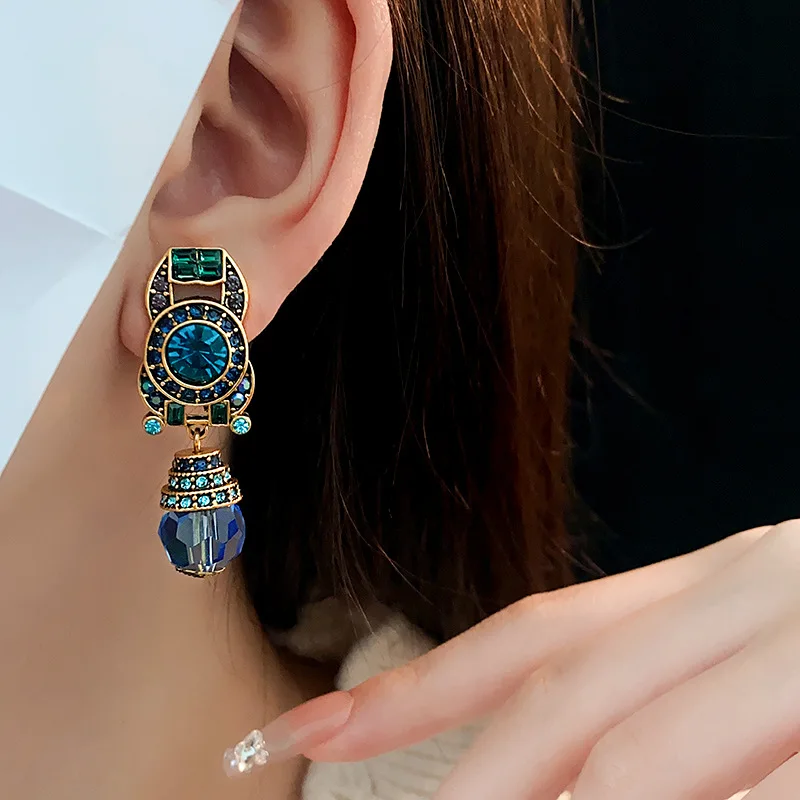 Boucles d'oreilles à Clip en cristal bleu pour femmes, strass, Vintage, mode, personnalité, breloques scintillantes, bijoux de luxe, nouveau |