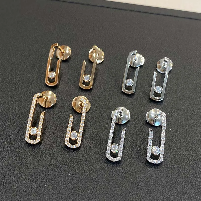 Boucles d'oreilles coulissantes en diamant mobile pour femmes, bijoux en argent regardé pur 925, conception en or rose, fête de mariage, mini taille mignonne |