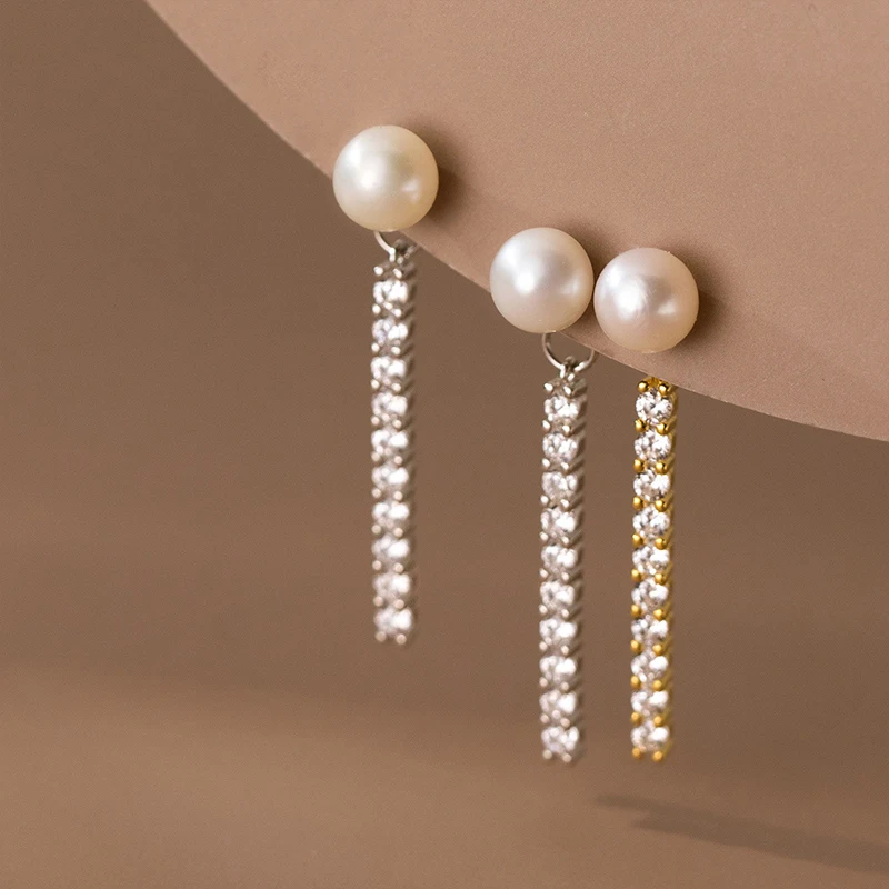 Boucles d’oreilles en argent Sterling 925 avec perles, élégantes, longues en Zircon, multifonctions, à la mode, bijoux, cadeau d’anniversaire