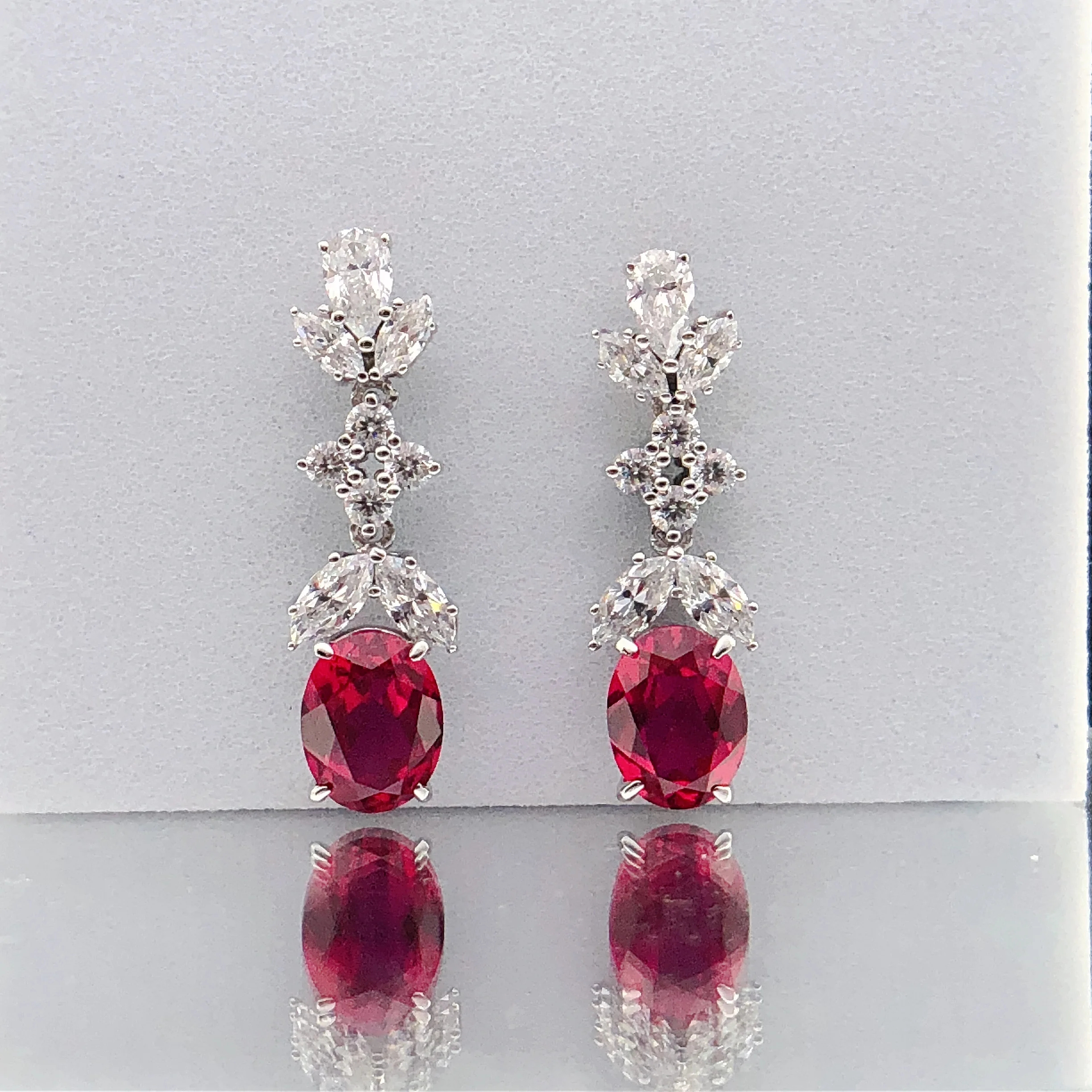 Boucles d’oreilles en diamant bleu et rubis, élégantes, chaque oreille a poussé en laboratoire, or blanc 14K, bijoux de fiançailles 070, 1,5 ct