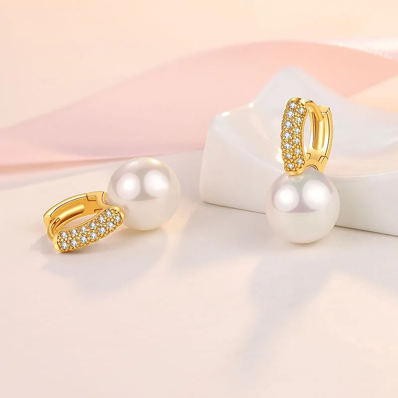 Boucles d’oreilles en perles pour femmes, bijoux en argent 925 avec pierres précieuses en Zircon, couleur or, accessoires cadeaux pour fête de mariage