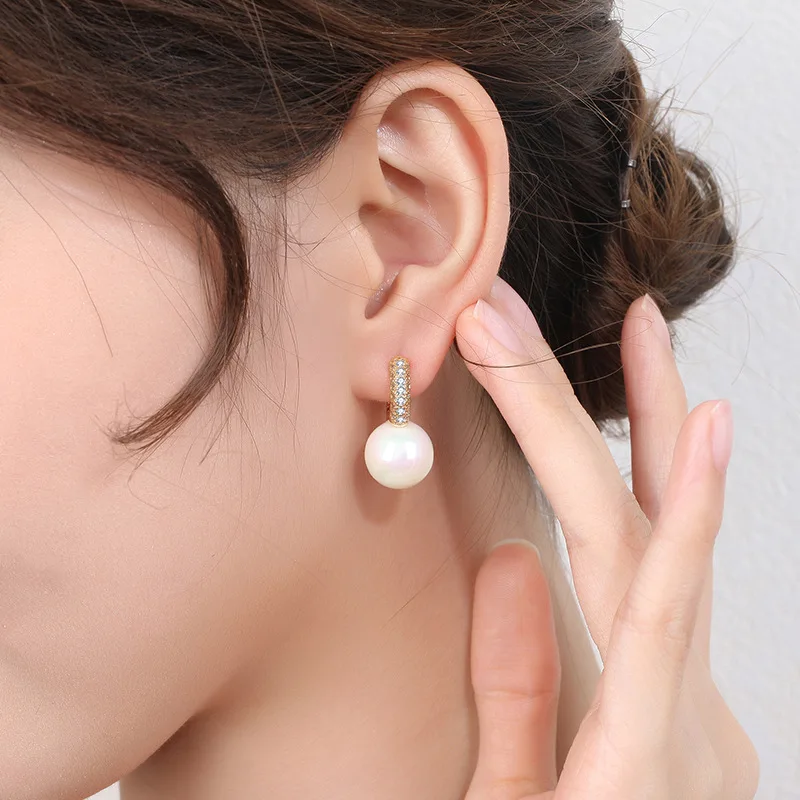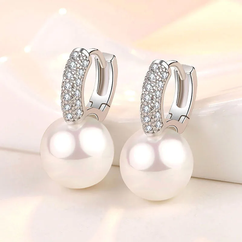 Boucles d'oreilles en perles pour femmes, bijoux en argent 925 avec pierres précieuses en Zircon, couleur or, accessoires cadeaux pour fête de mariage |