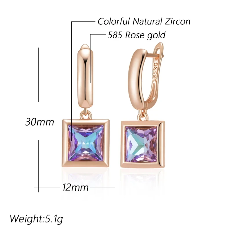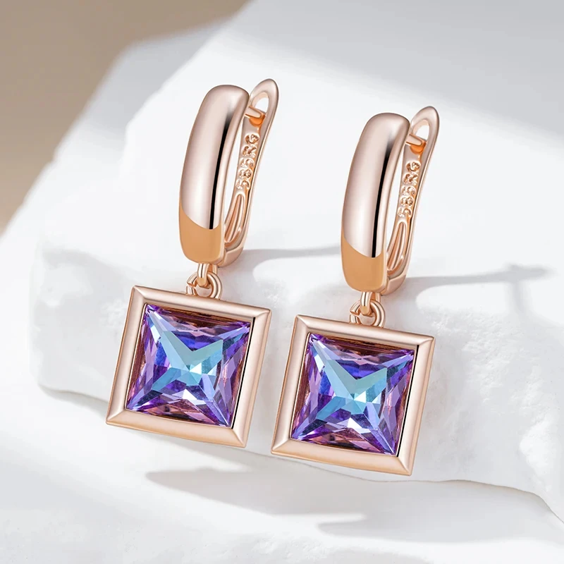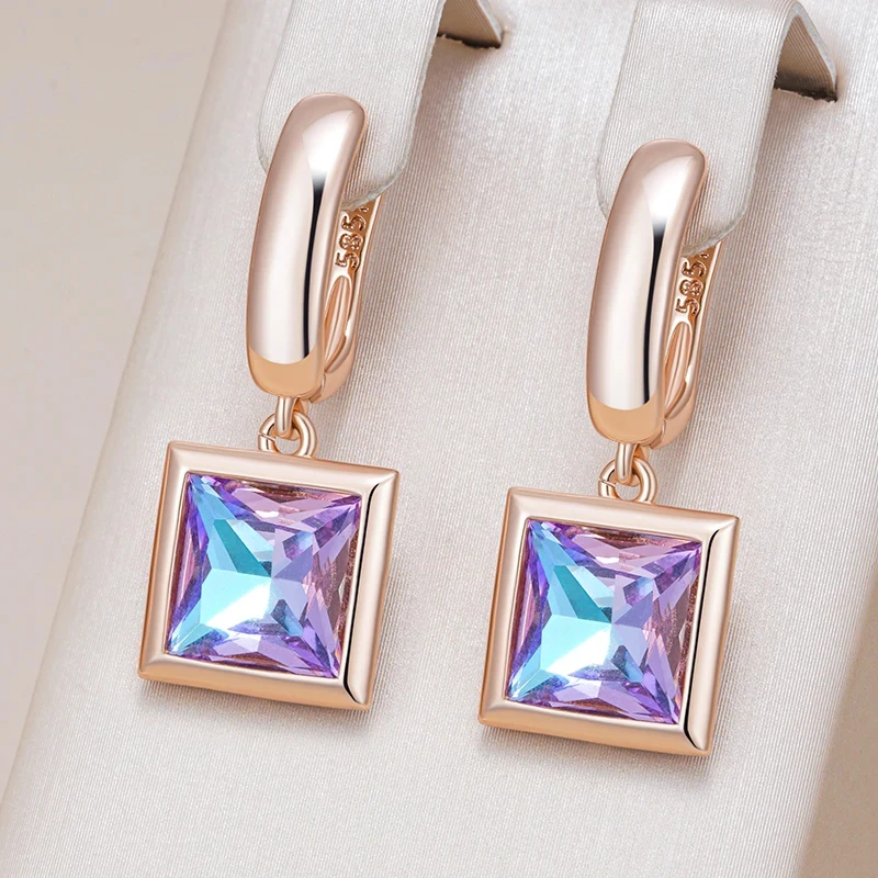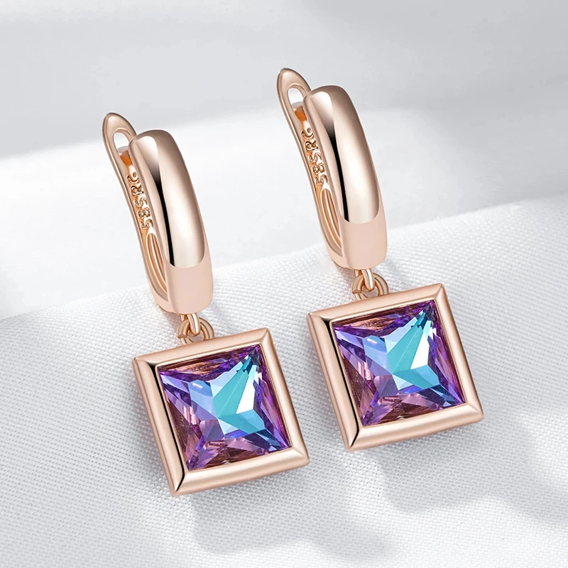Boucles d’oreilles en pierre de cristal dégradé carré pour femmes, bijoux dorés simples, pendentif géométrique, accessoires Vintage brillants, 585