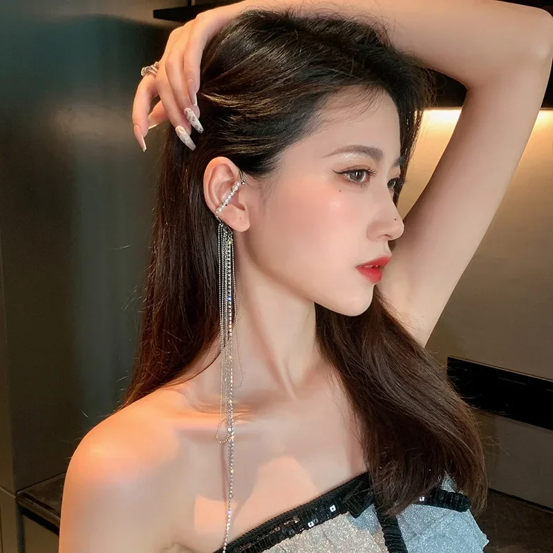 Boucles d'oreilles longues à franges pour femmes, diamants incrustés, perles 216.239., bijoux simples et élégants, haut de gamme, à la mode |
