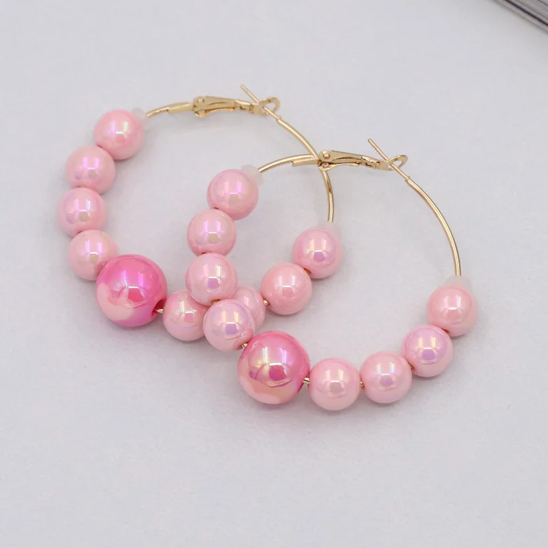 Boucles d’oreilles pour femmes, accessoires, nouvelle mode, perles rondes, cœur d’amour, cerceau coloré, loisirs, fête, vacances, bijoux, 2025