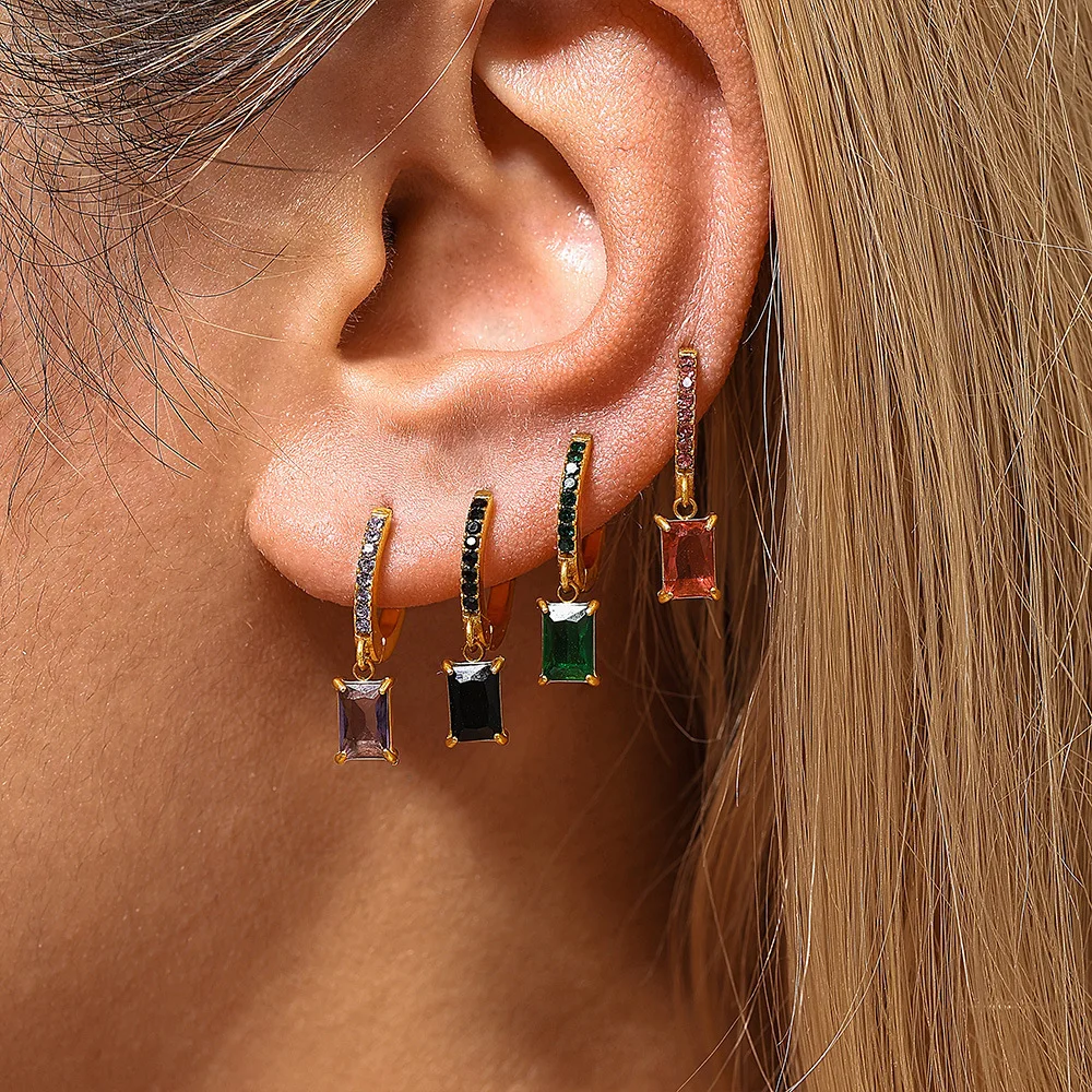 Boucles d'oreilles pour femmes, pendentif carré de Style européen et américain, Zircon en acier inoxydable, accessoires de bijoux à la mode et polyvalents |