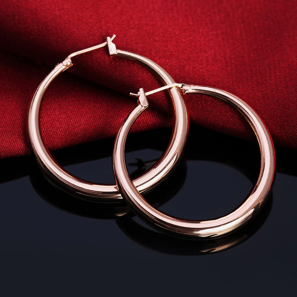 Boucles d'oreilles rondes en argent regardé 925 plaqué or 18 carats, bijoux fantaisie, cadeau de mariage et de Noël, haute qualité, 3.5cm |