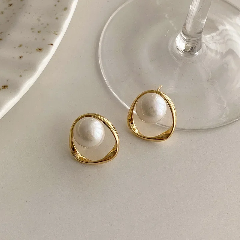 Boucles d'oreilles rondes en Imitation de perles pour femmes, couleur or, Design coréen délicat et irrégulier, bijoux inhabituels à la mode 2023 |