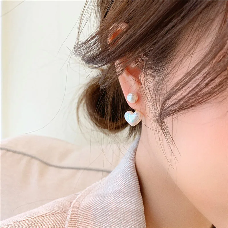 Boucles d'Oreilles Rondes en Perles pour Femme, Bijoux Élégants en Forme de Cœur, pour ixde Mariage, Cadeaux de la Saint-Valentin |