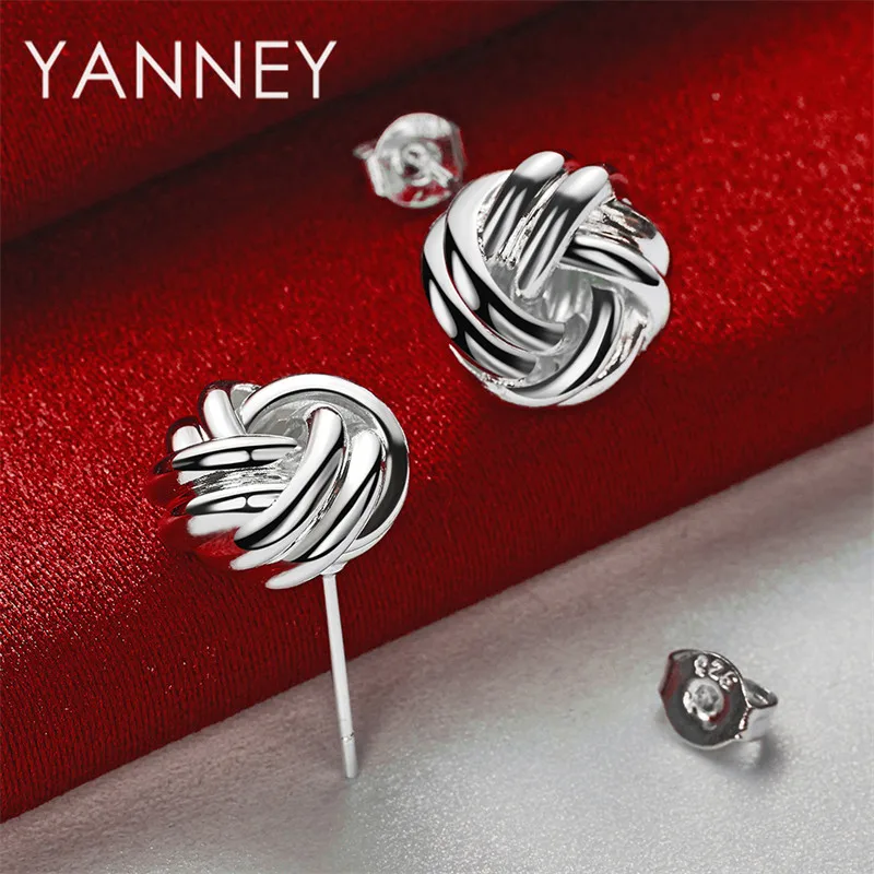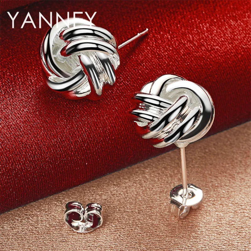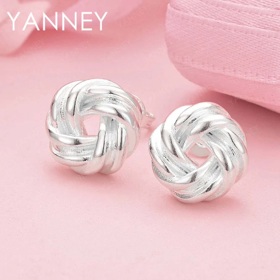 Boucles d'oreilles rondes nouées tressées en argent Sterling 925 pour femmes, bijoux de fiançailles, accessoires de fête |