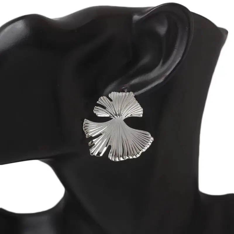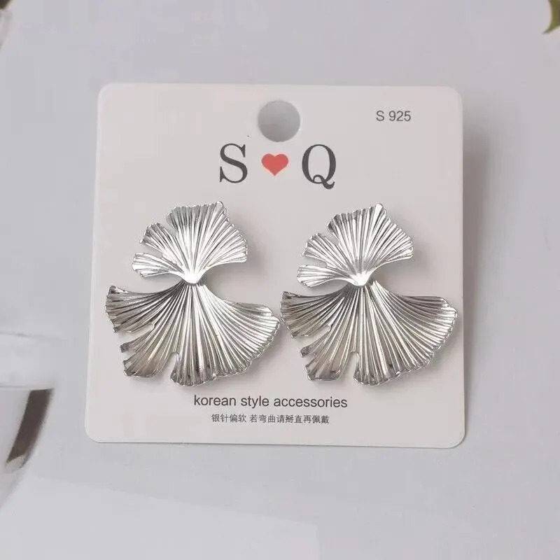 Boucles d'oreilles simples en métal couleur argent, grande plante feuille de Ginkgo pour femmes, déclaration de mode, bijoux cadeau Pendiente |
