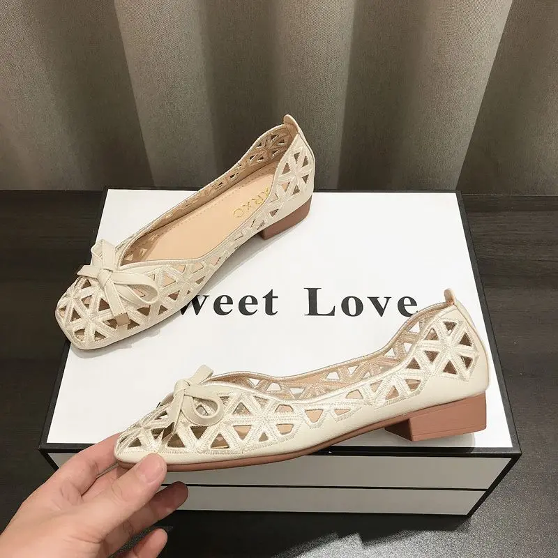 Bout carré bouche peu profonde chaussures plates femme noeud papillon découpes chaussures pour 2025 nouvel été sans lacet ballerines femmes broderie mocassins |