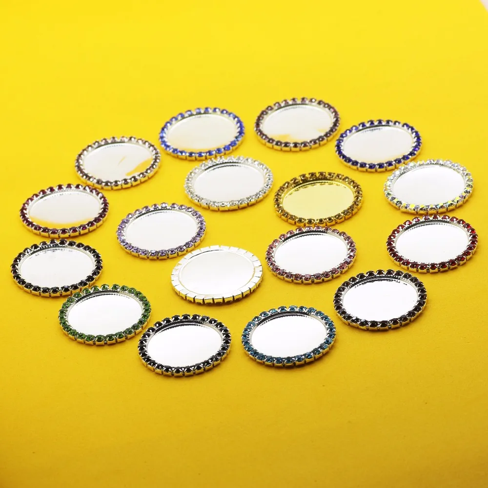 Bouton en strass, plateau de bouchon de bouteille en métal, dos plat, cabochon de capuchon de clé, taille interne 25MM, 10 pièces, 50 pièces, ensemble de 100 pièces