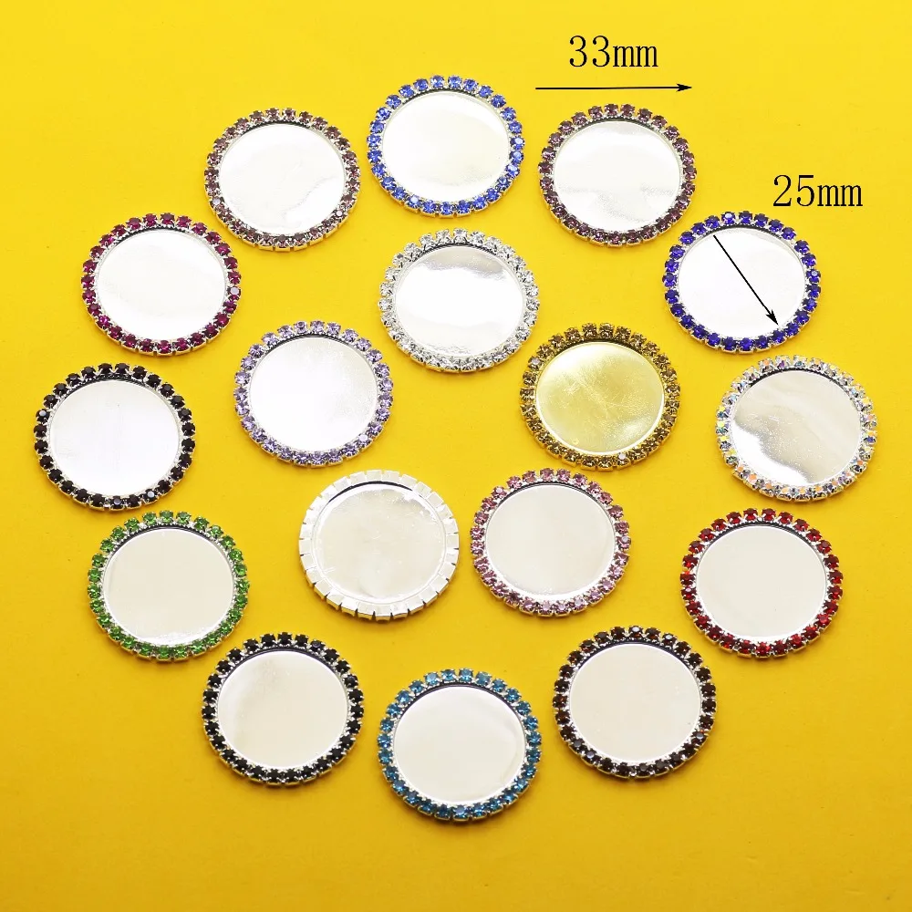 Bouton en strass, plateau de bouchon de bouteille en métal, dos plat, cabochon de capuchon de clé, taille interne 25MM, 10 pièces, 50 pièces, ensemble de 100 pièces |
