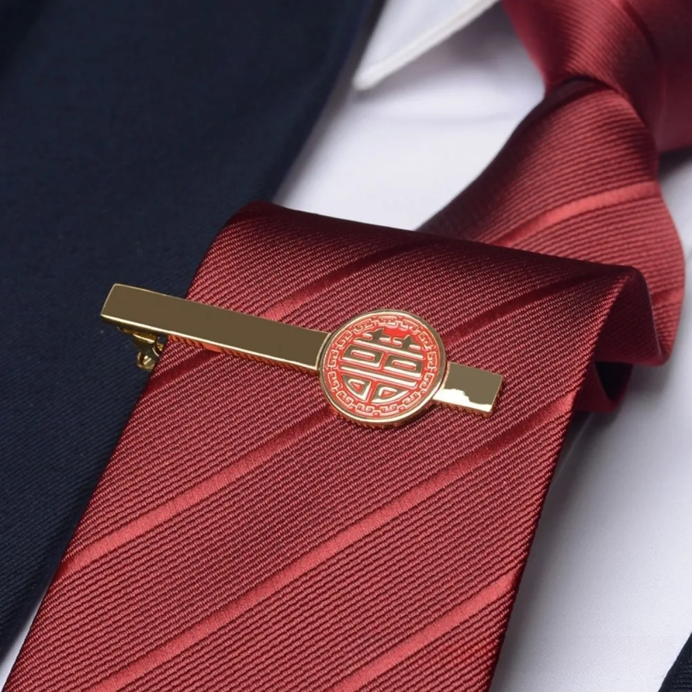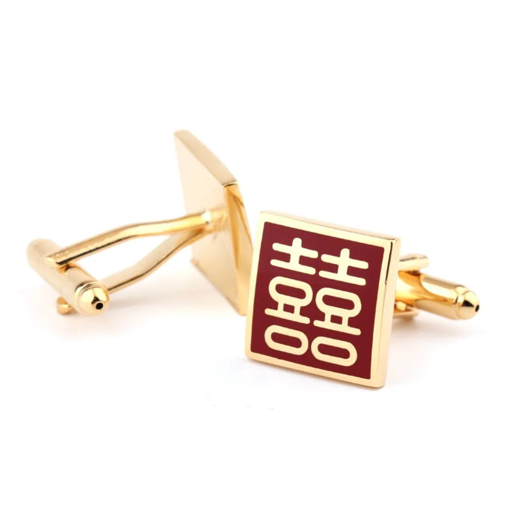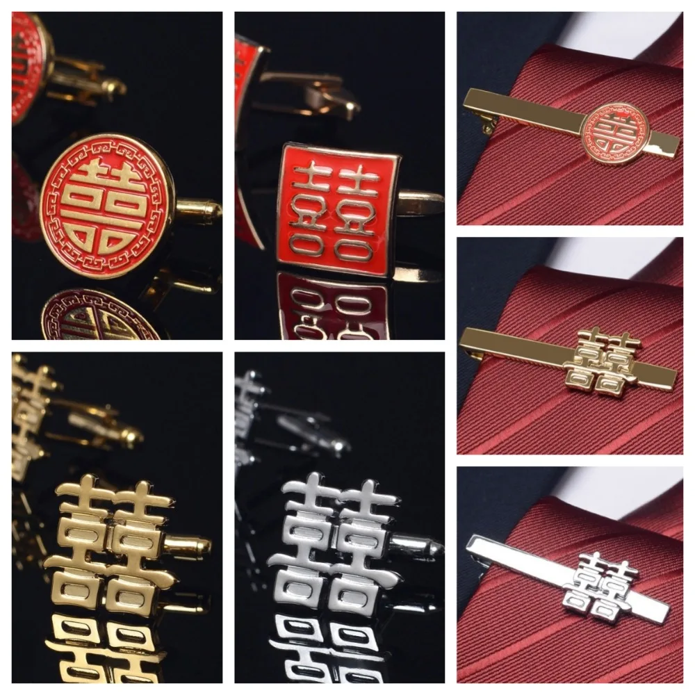 Boutons de manchette Double bonheur, mot heureux, alliage de bénédiction, pince à cravate de mariage chinois, bouton traditionnel rouge pour manches de marié |