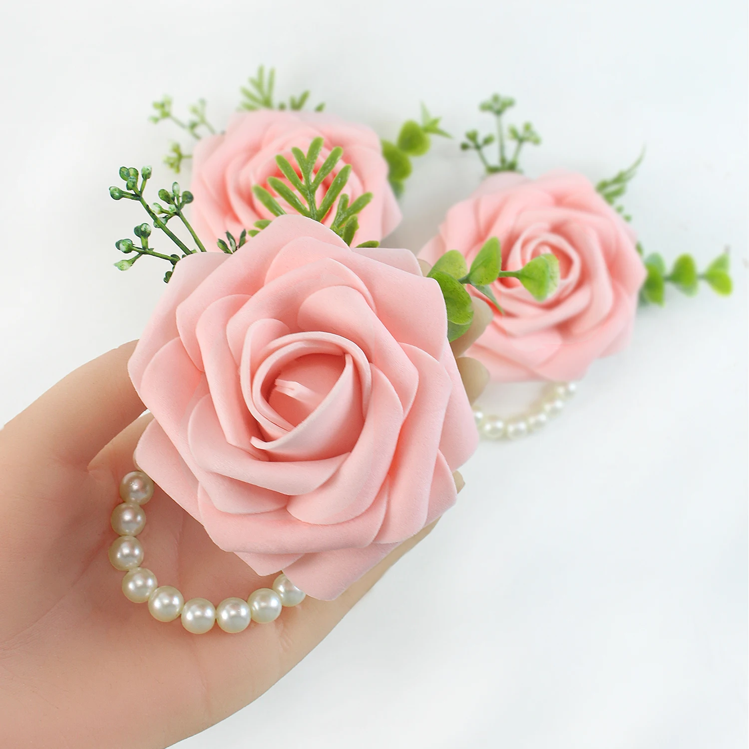Bracelet de Corsage de poignet pour demoiselles d'honneur, accessoires de mariage, fleurs de roses PE, manchette artificielle, décor de fête de mariage |