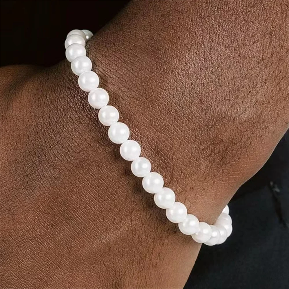 Bracelet de perles d'imitation rétro Simple pour femmes, perles acryliques extensibles pour hommes, bijoux de fête à la mode, cadeau |