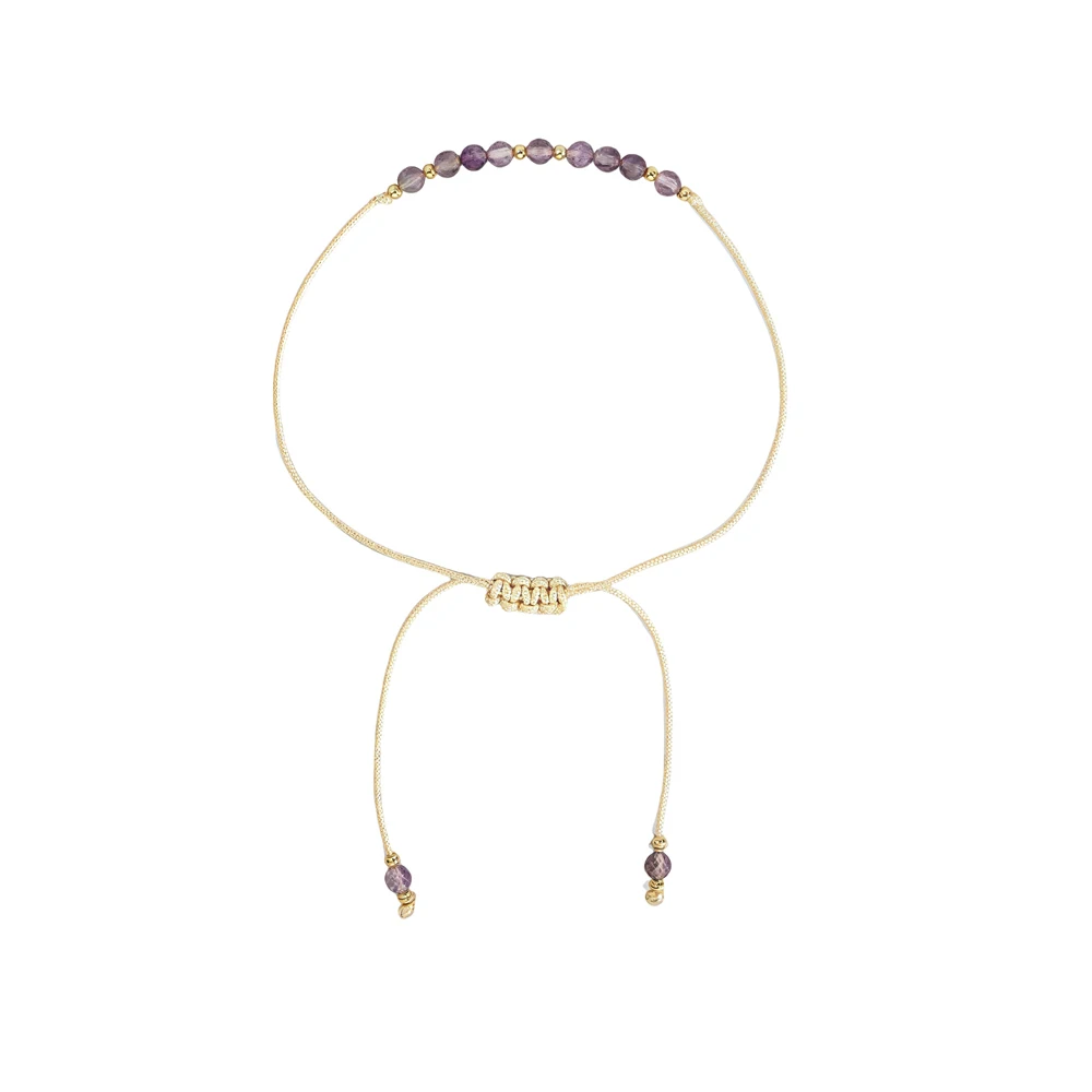 Bracelet de perles en pierre naturelle pour femmes, réglable, bijoux à la mode, design avec cordon d'améthyste |
