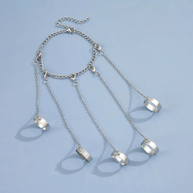 Bracelet de poignet géométrique couleur argent pour hommes et femmes, anneau Punk, chaîne, ensemble de breloques, mode Couple, bijoux cadeaux |