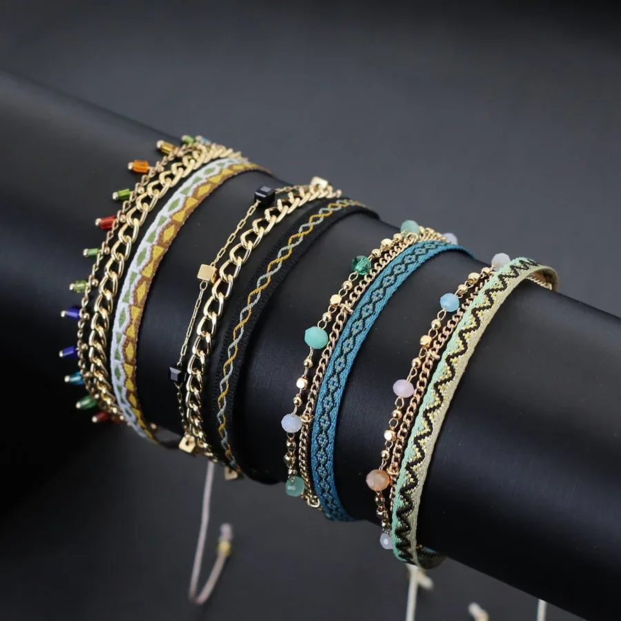 Bracelet de style marin pour femmes, bohème, chaîne multicouche, canadette, perles de cadres faites à la main, réglable, cadeau rapide pour petite amie |