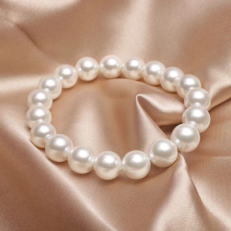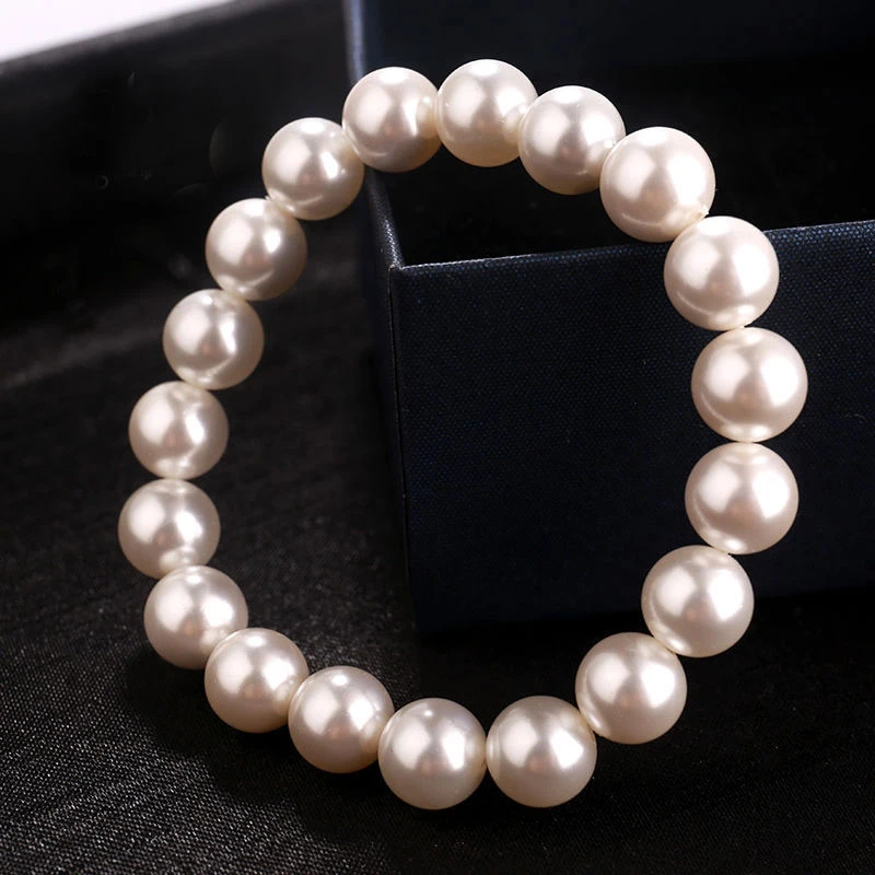 Bracelet élastique en perles blanches pour femmes et hommes, élégant, extensible, pour Banquet de mariage, perles de 6 à 12mm, bijoux faits à la main, cadeau