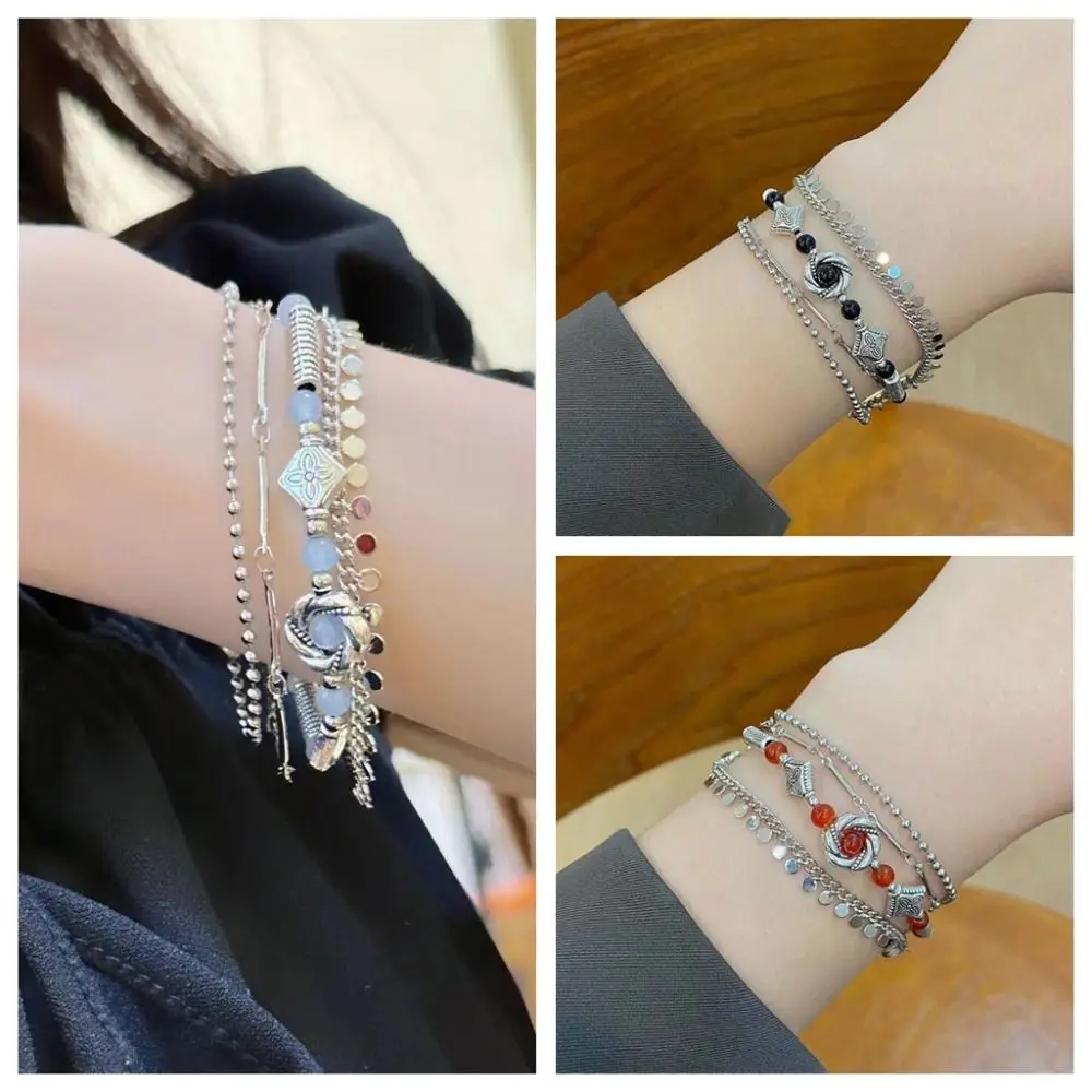 Bracelet élégant à pampilles de Style ethnique, fleur délicate, rétro multicouche, bijoux à main, ornement de poignet, perles, cadeau |