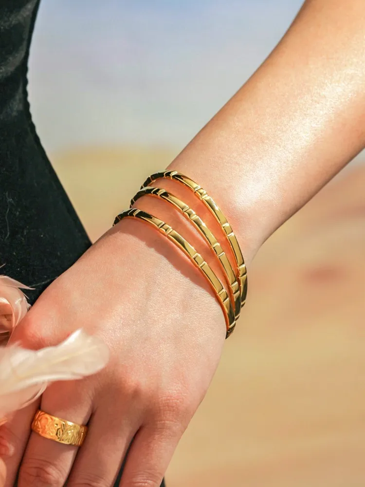 Bracelet en acier inoxydable pour femmes et hommes, plaqué or 18 carats, sans ternissement, unisexe, ouvrable, bijoux de Couple simples |